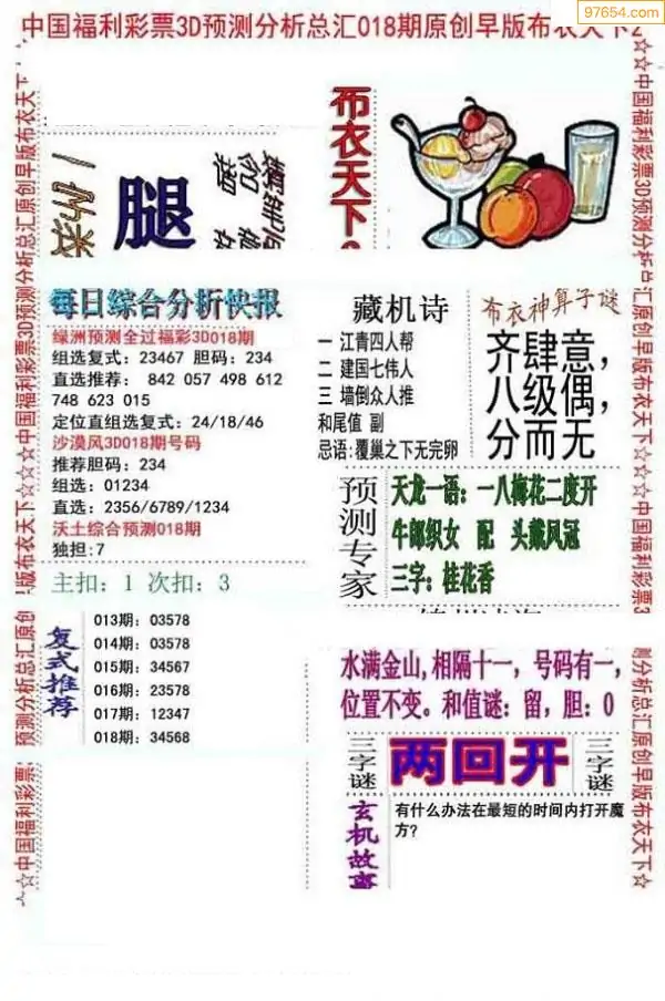 福彩018期3d真精华布衣+布衣早报(转载)