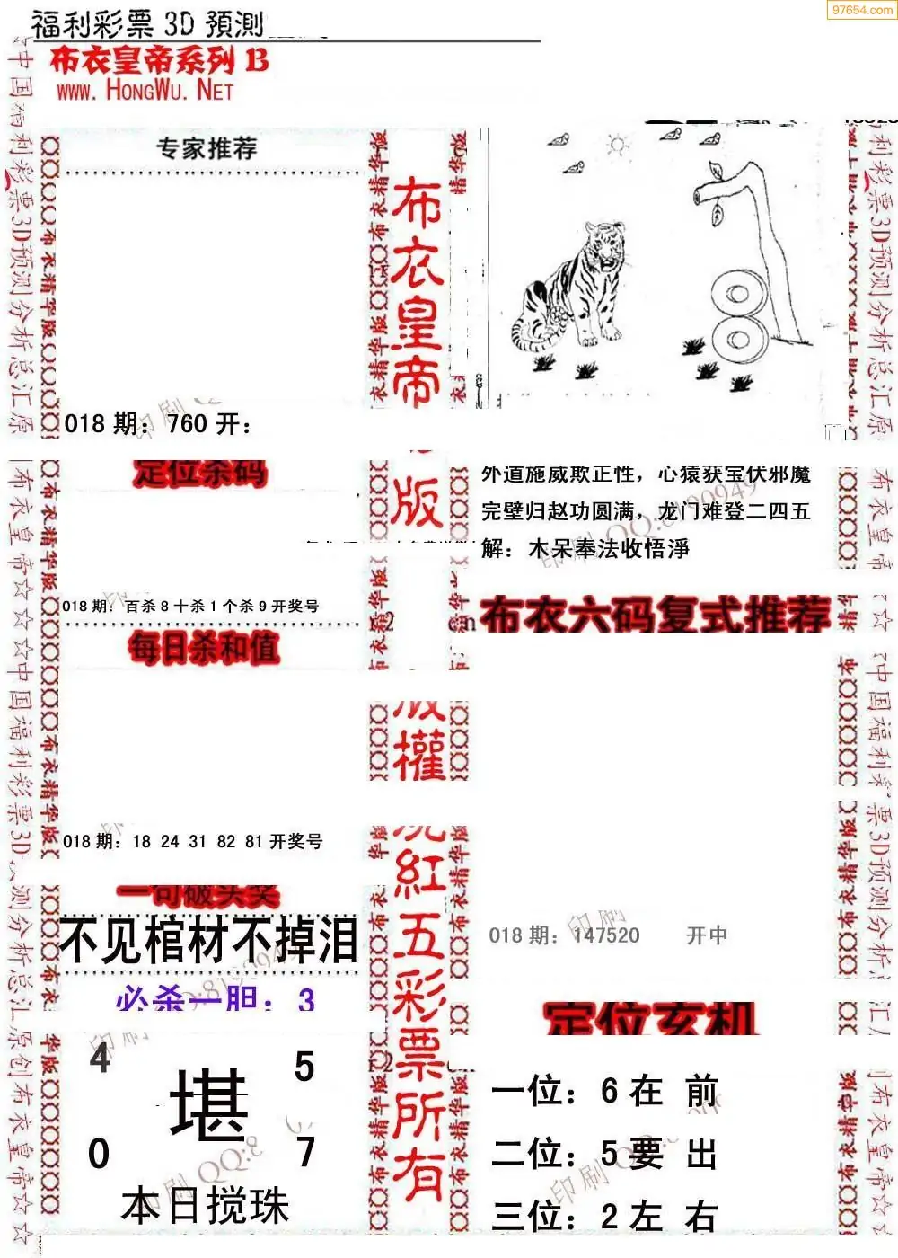 018期3D彩吧图库精华布衣图123456分享