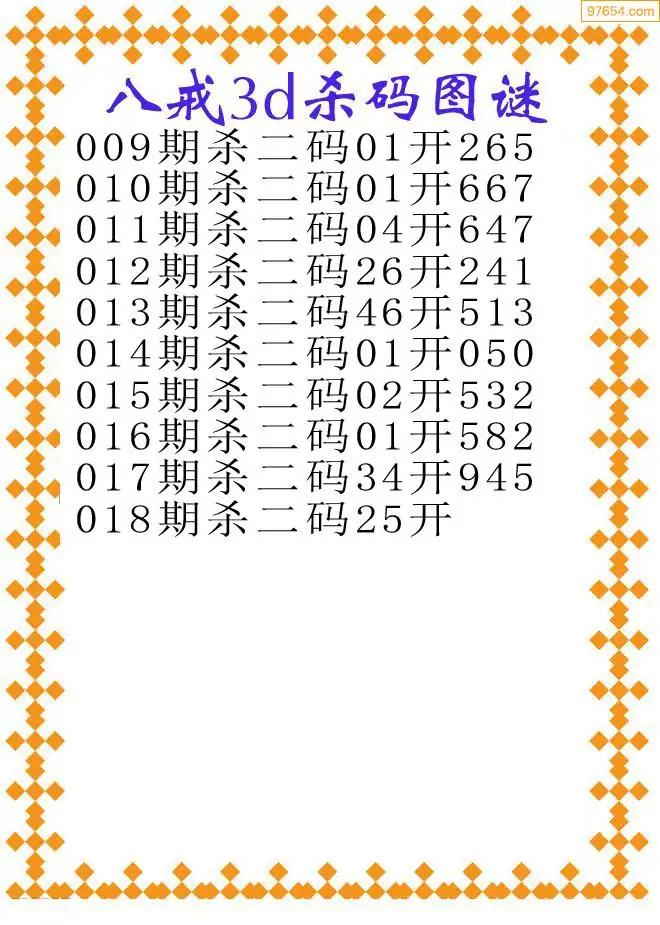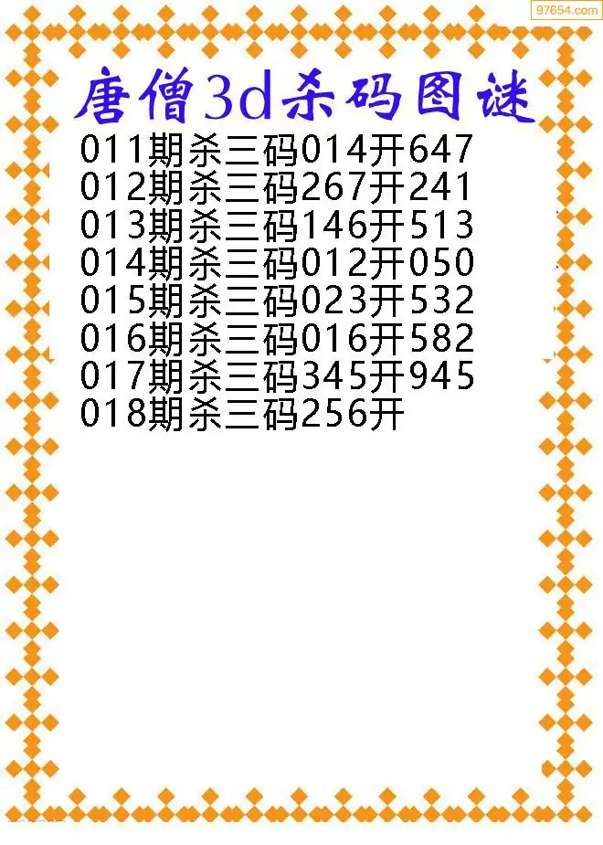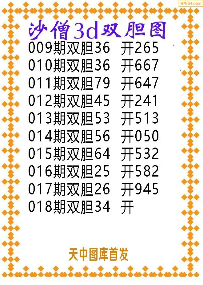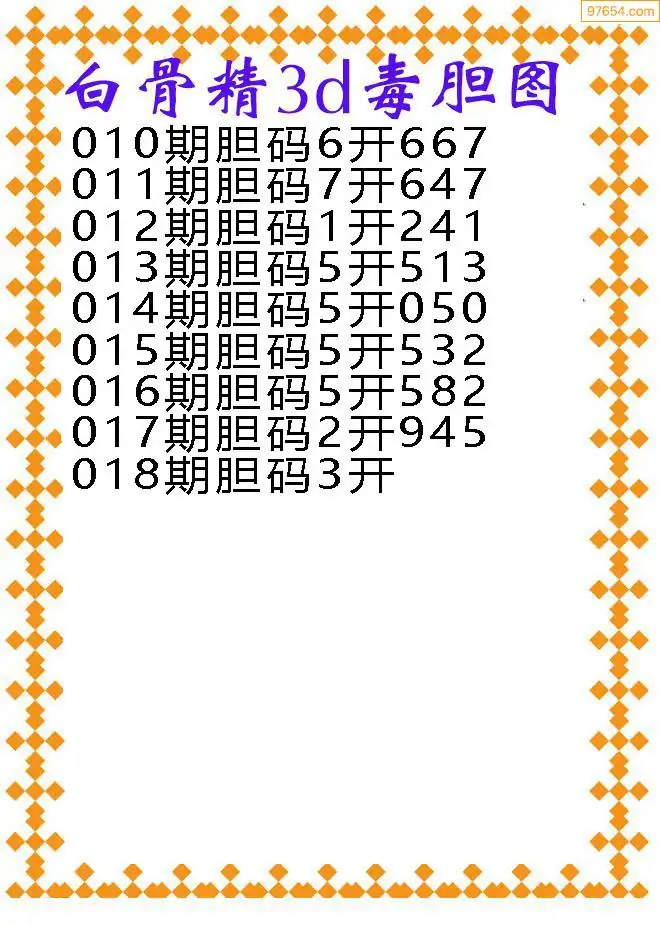 018期97654本站收集胆码出号预测