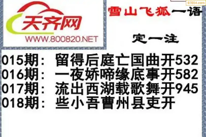 彩票3d字谜018期雪山飞狐一语定一注