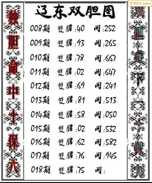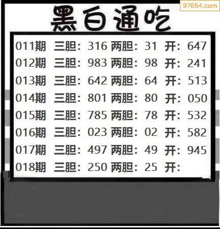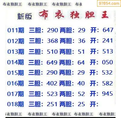 018期97654本站收集胆码出号预测