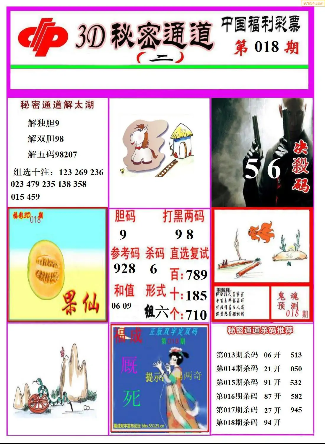 018期97654本站收集胆码出号预测