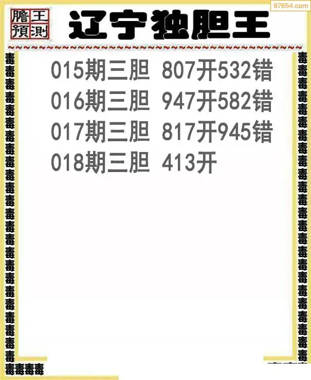 018期97654本站收集胆码出号预测