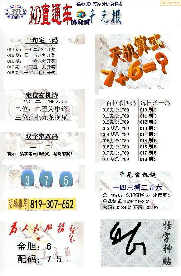 福彩3D018期天牛彩吧套图整合总汇