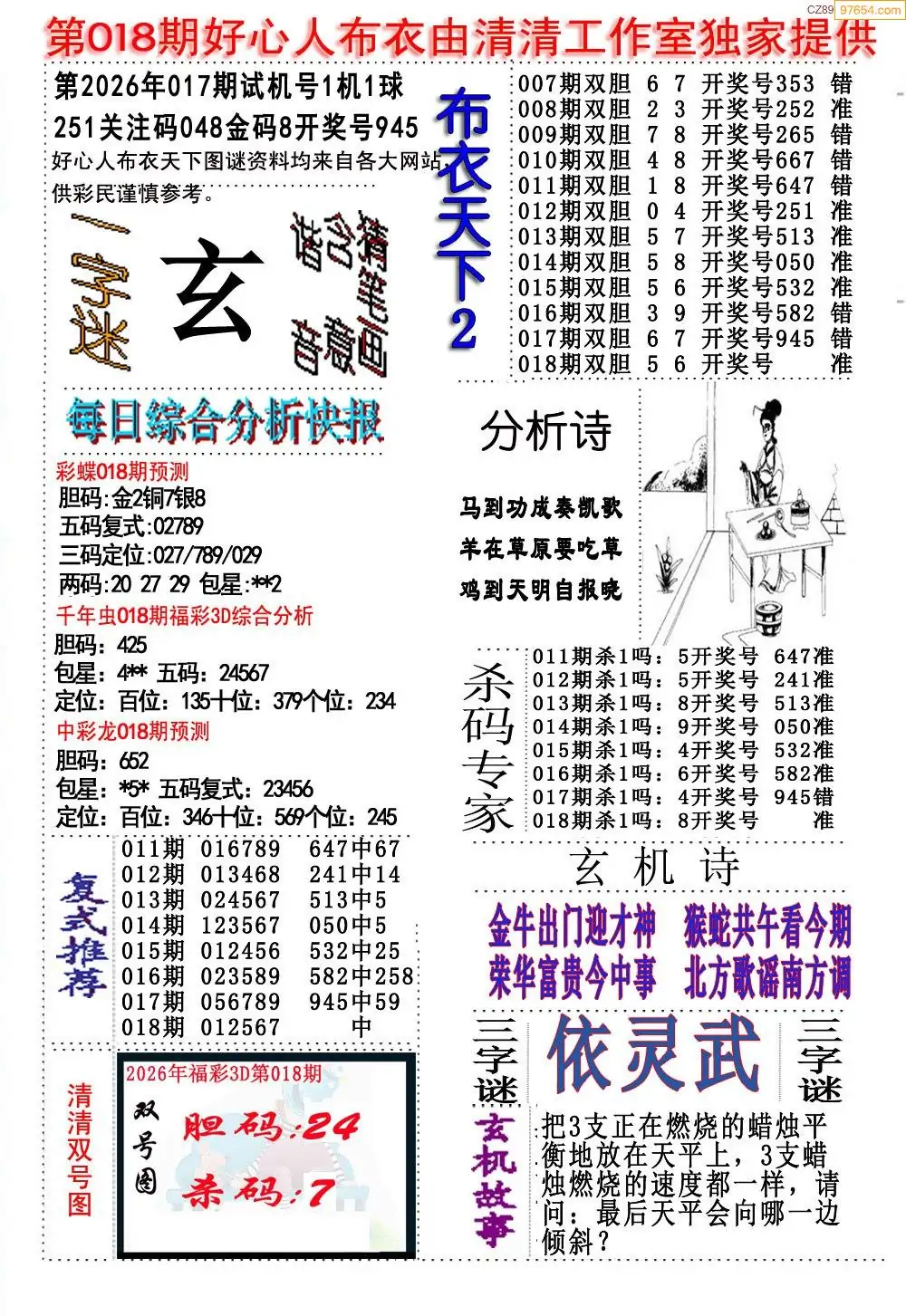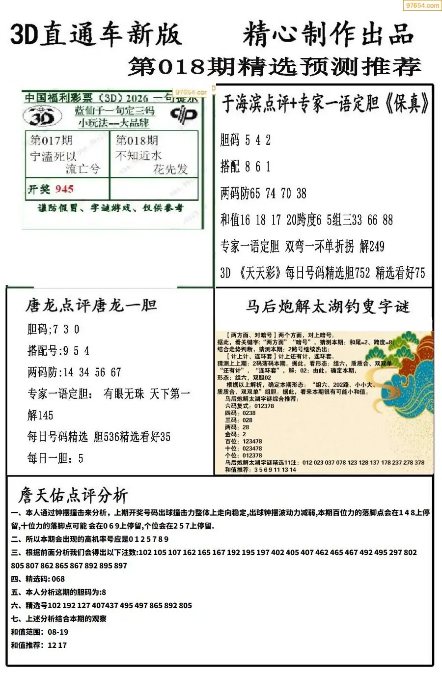 (2)26年018期本期3d图迷汇总_福彩3D图谜总汇图