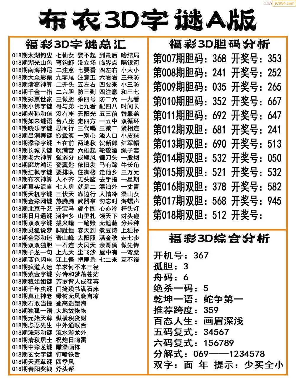 (3)2026017期3D预测总汇全图_福彩3d图谜字谜总汇
