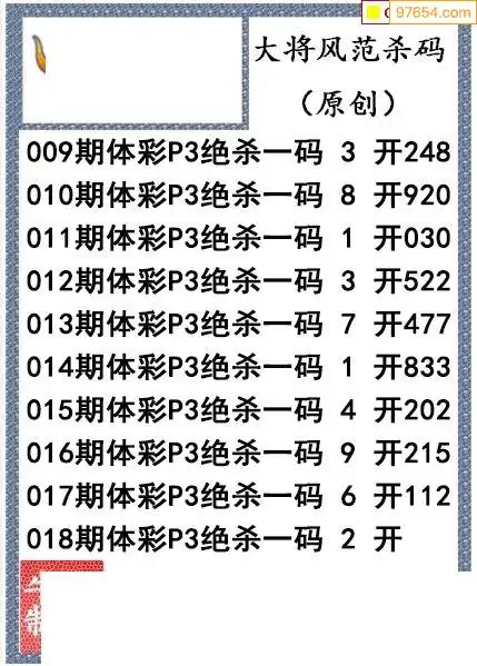 26年018期大将风范p3杀码体彩图谜