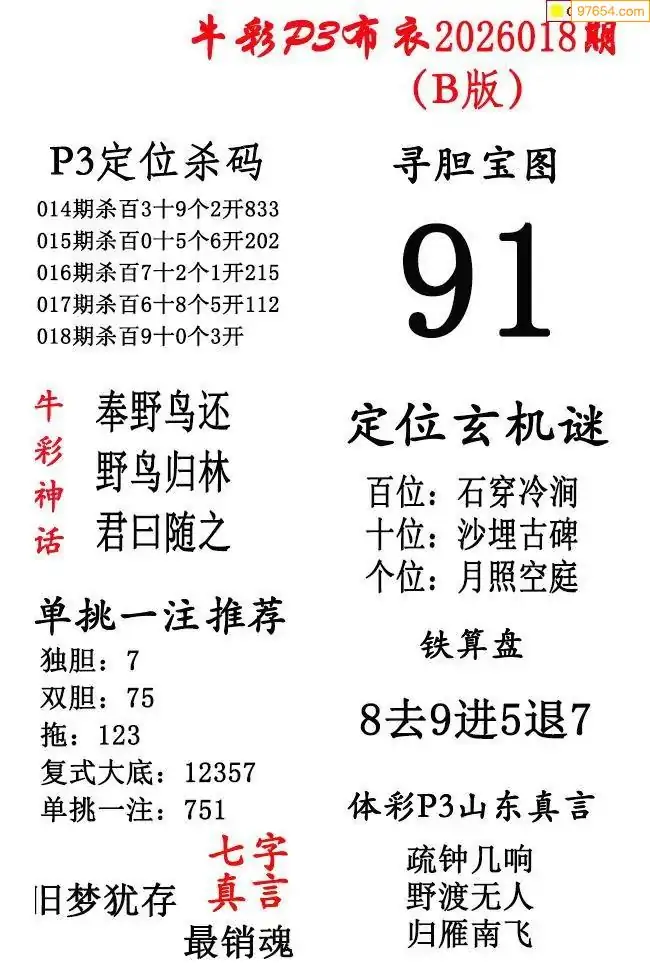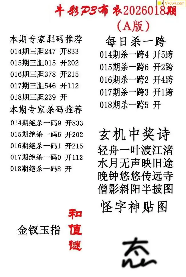 2026年018期北盟天机图+p3仙机图谜 _p3图谜汇总看点