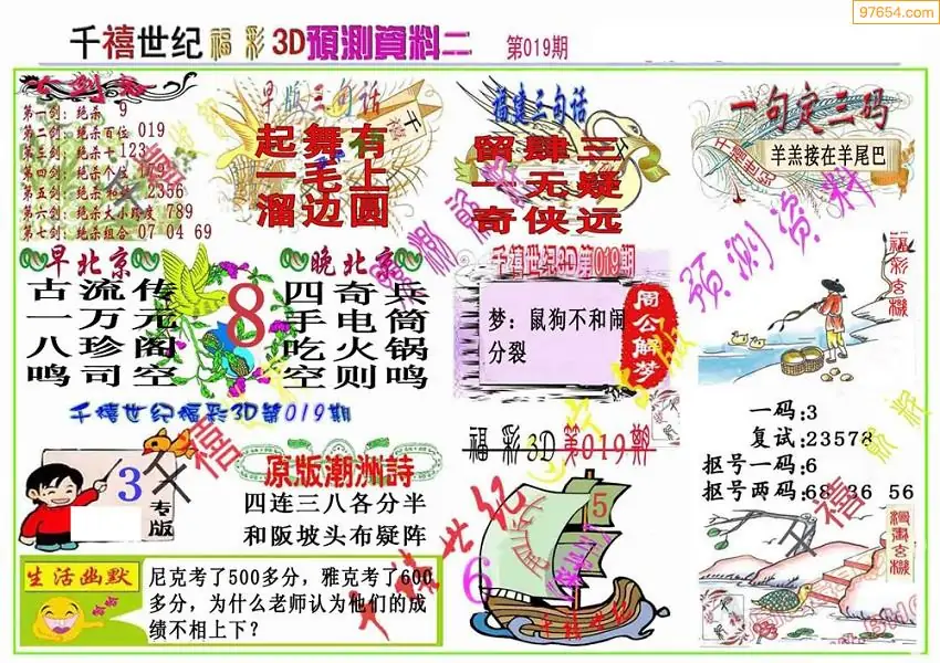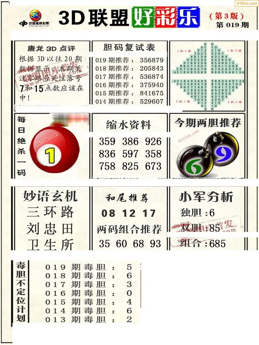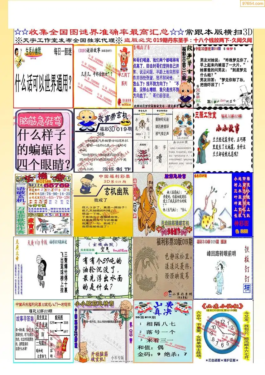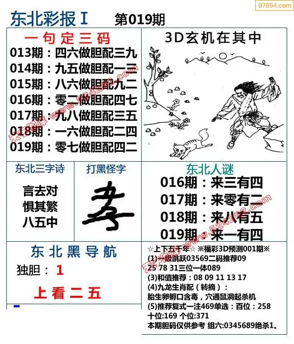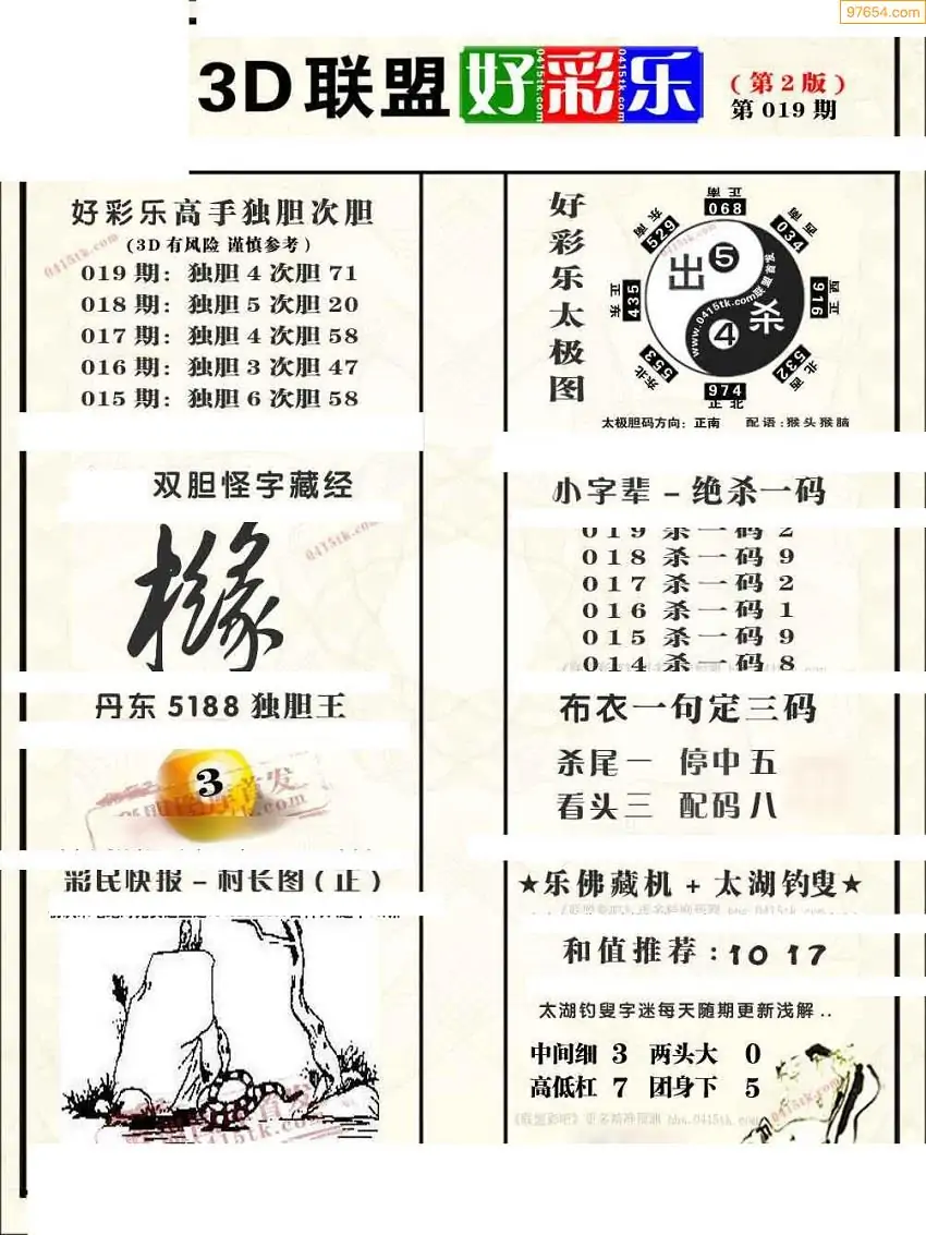 019期3D牛彩预测报+彩吧字谜报