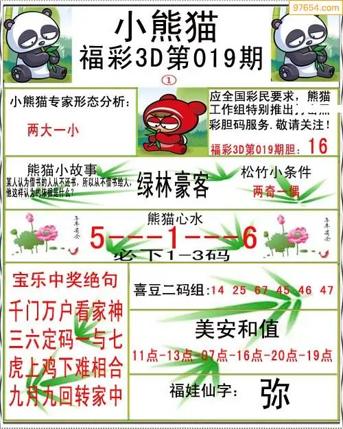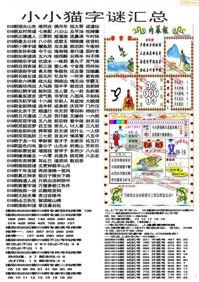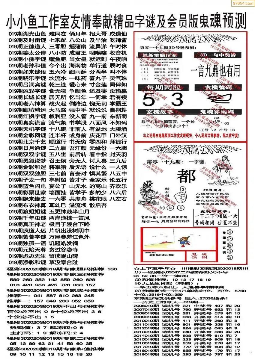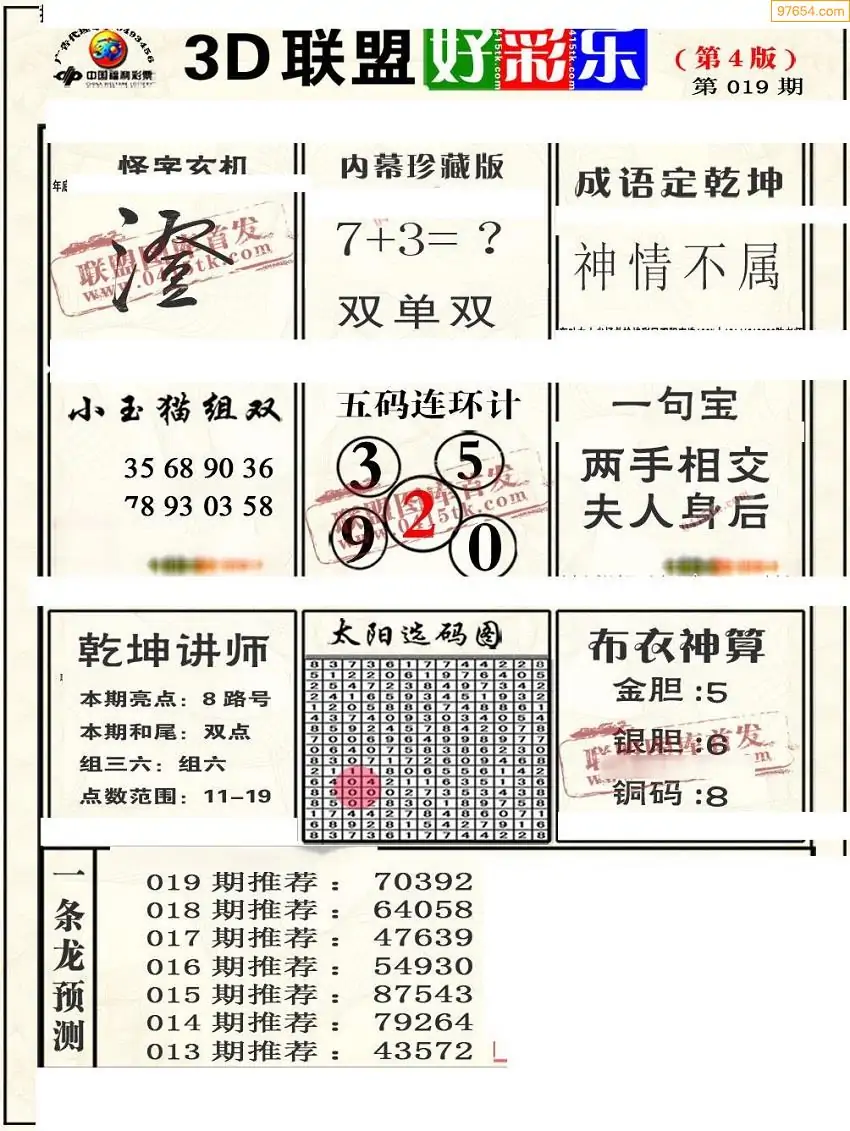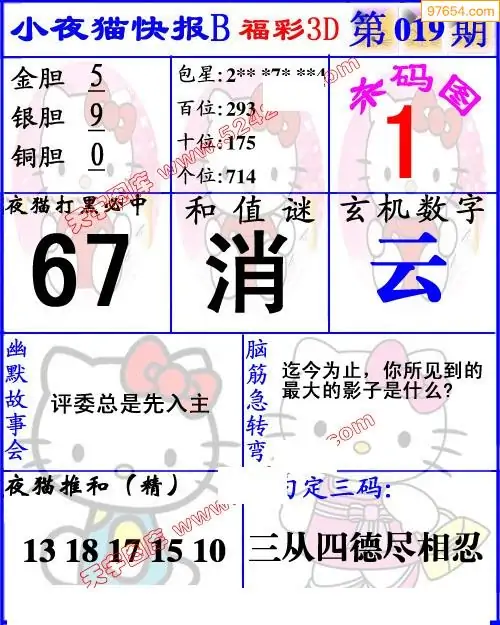 019期3D牛彩预测报+彩吧字谜报