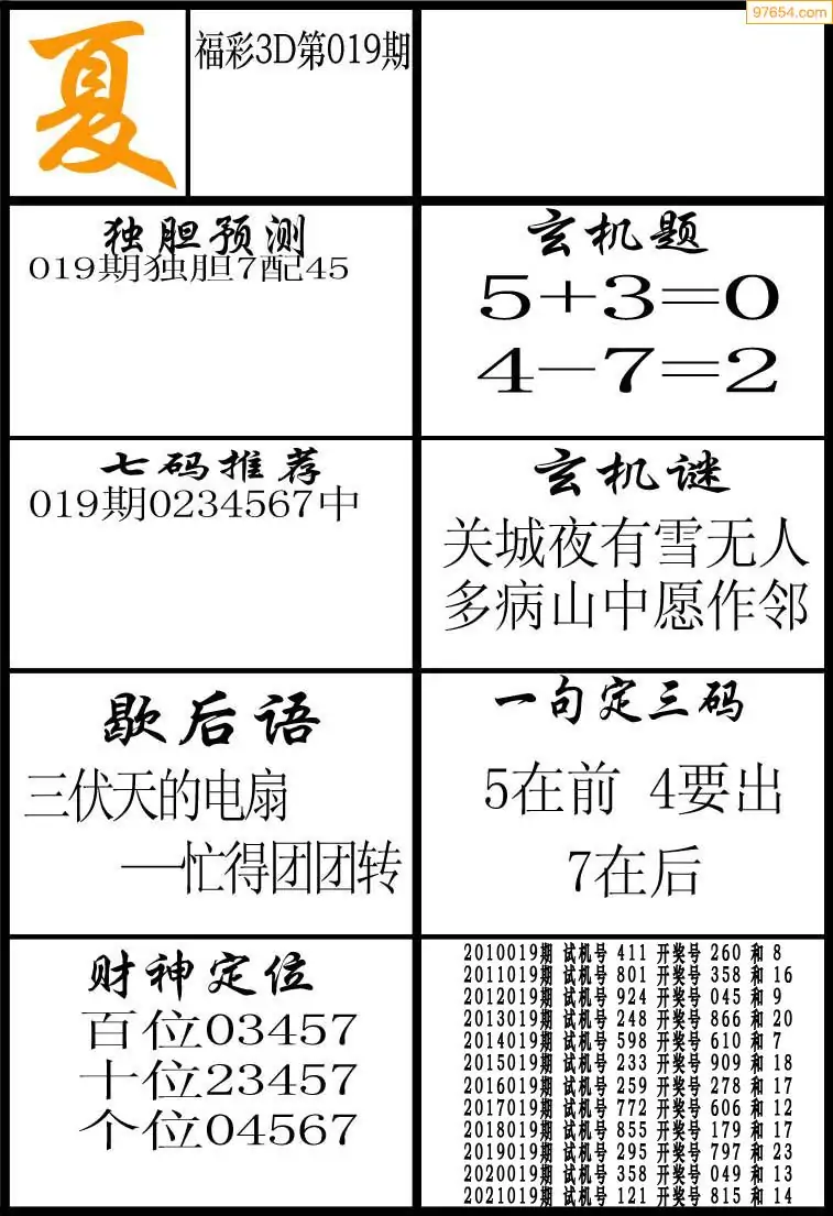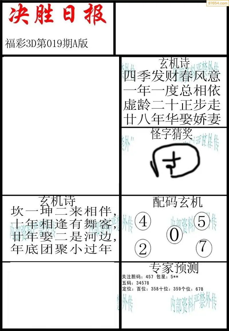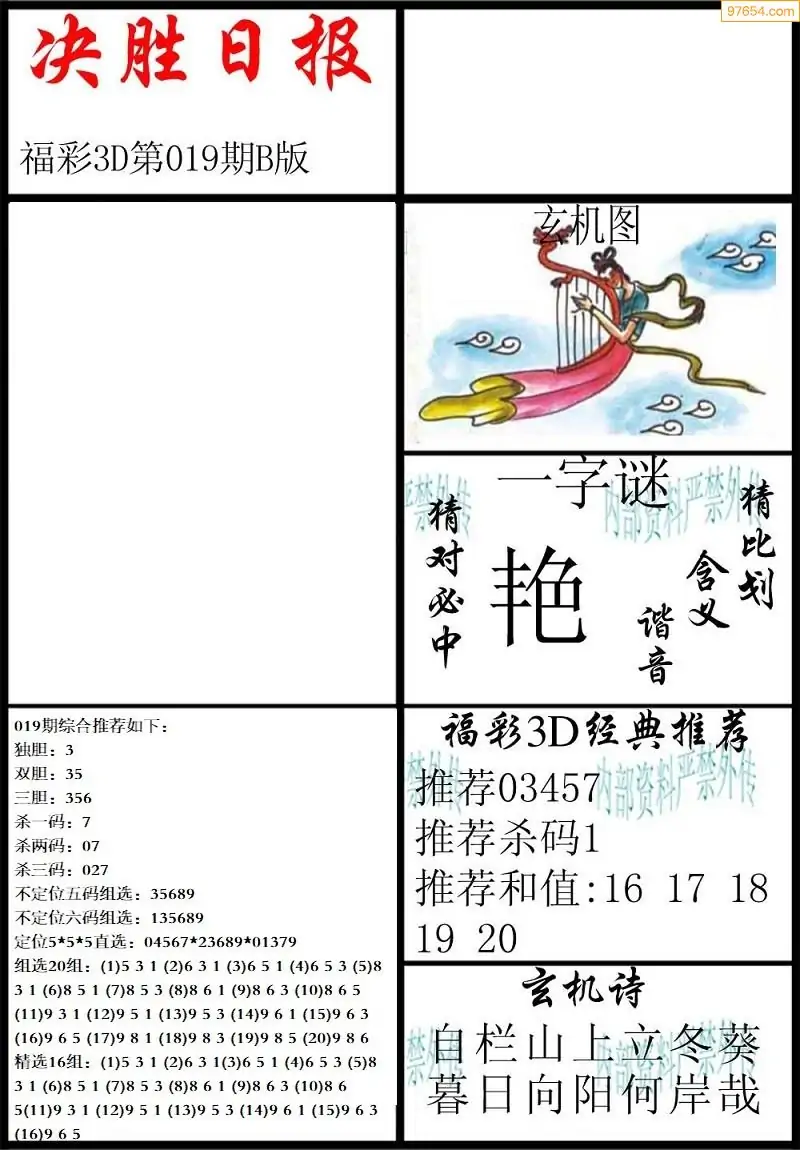 26019期3D天中原创预测字谜报