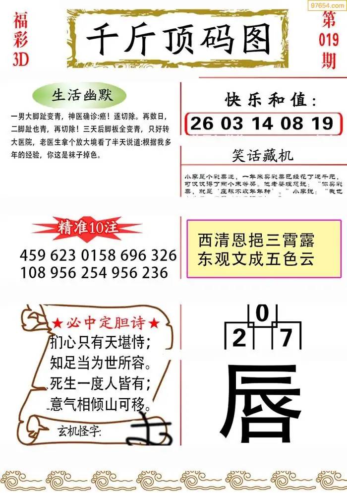 26019期天宇一句定三码3D图库