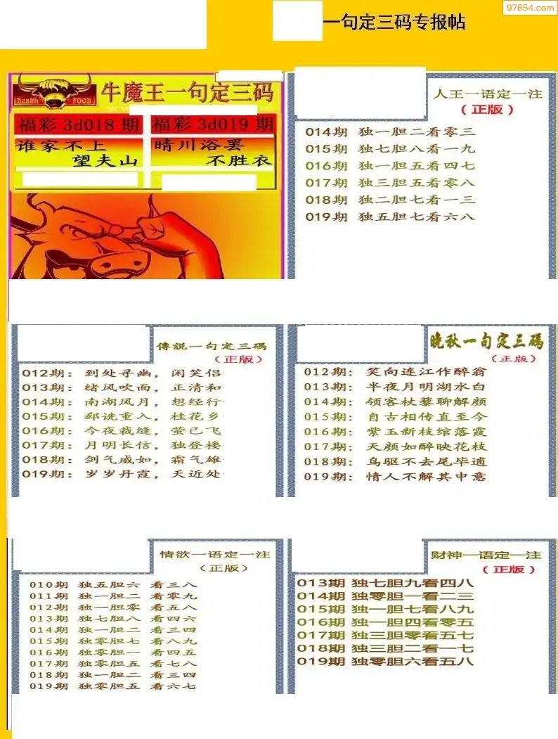 福彩3D019期天牛彩吧套图整合总汇