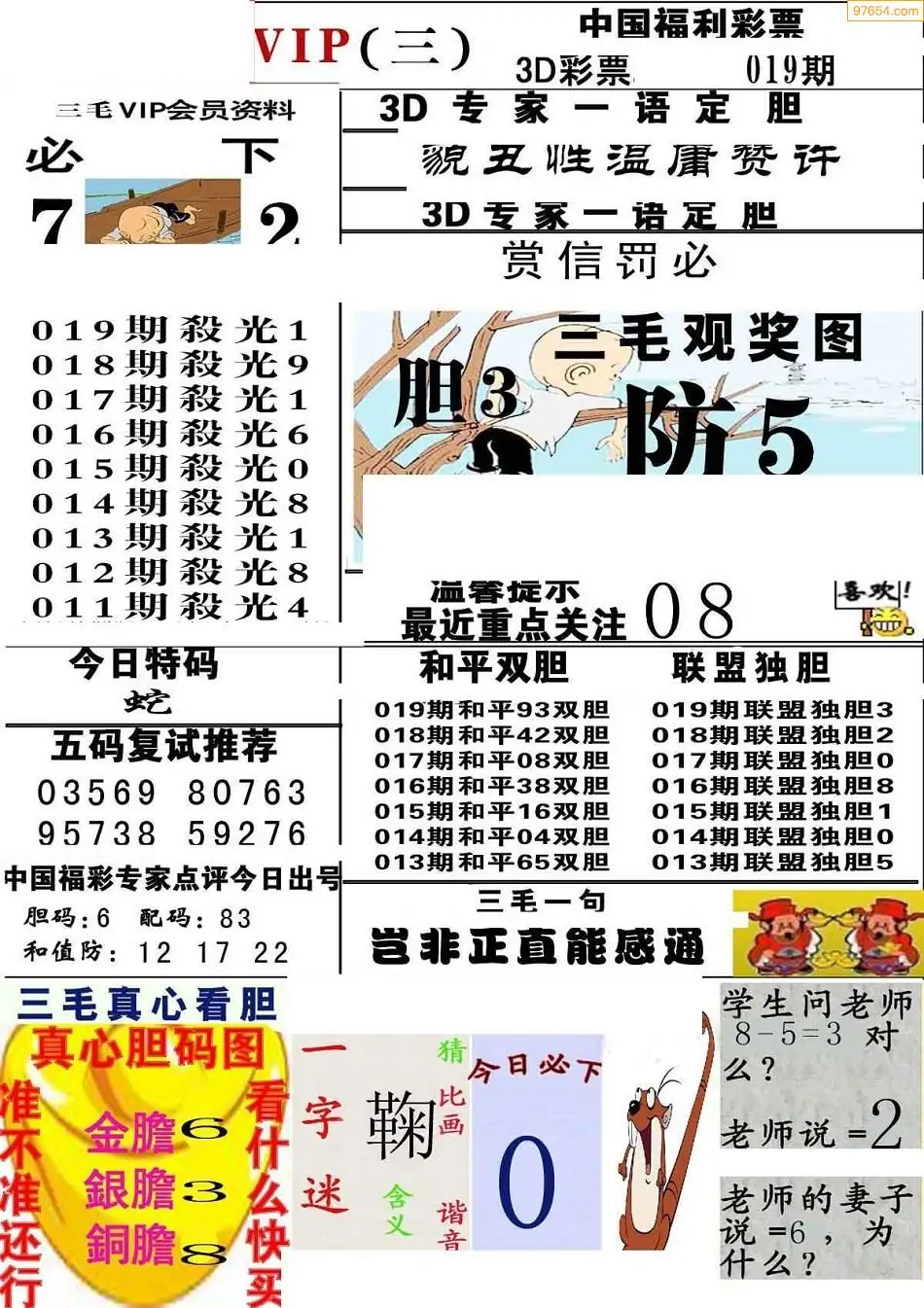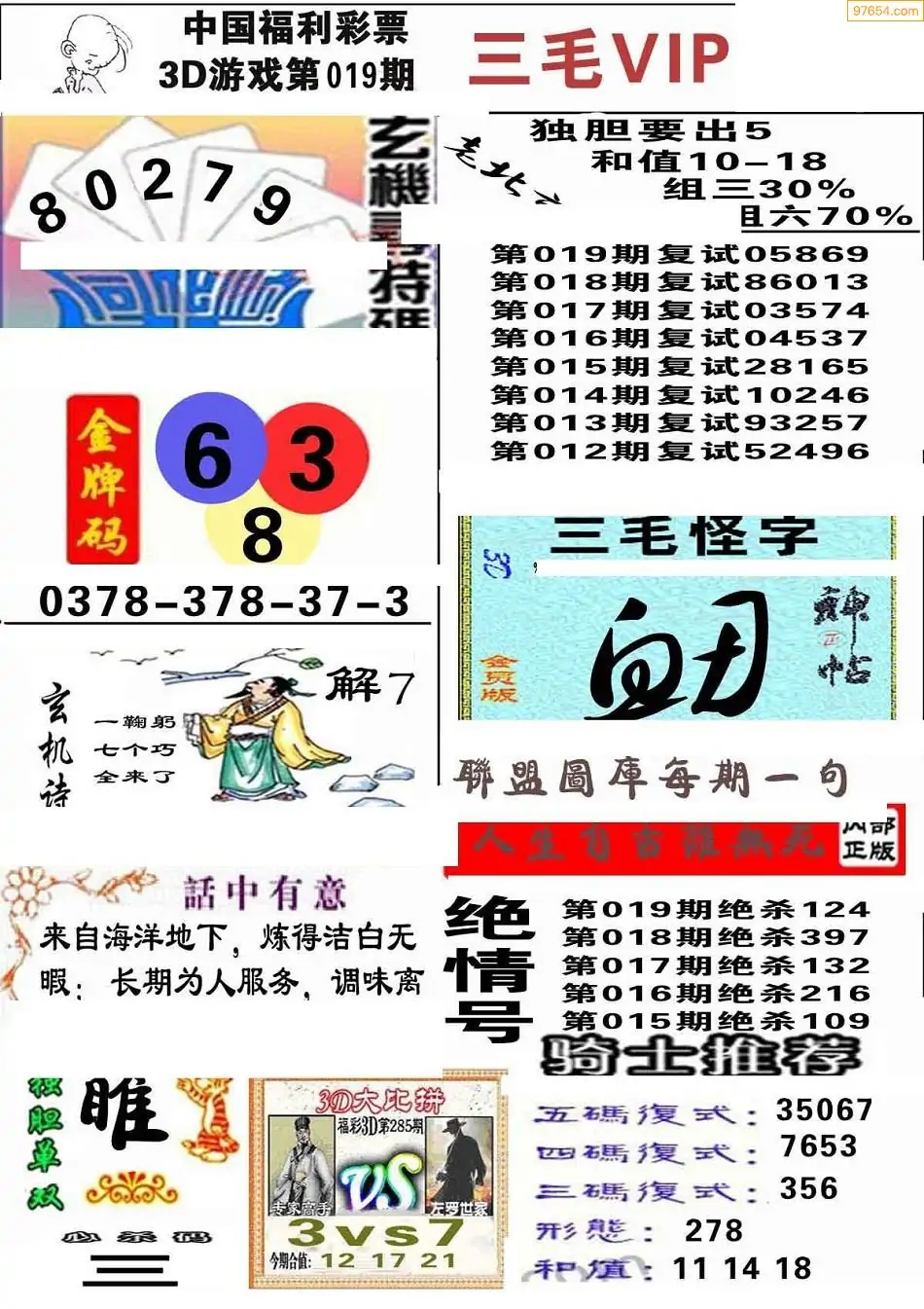 019期3D牛彩预测报+彩吧字谜报