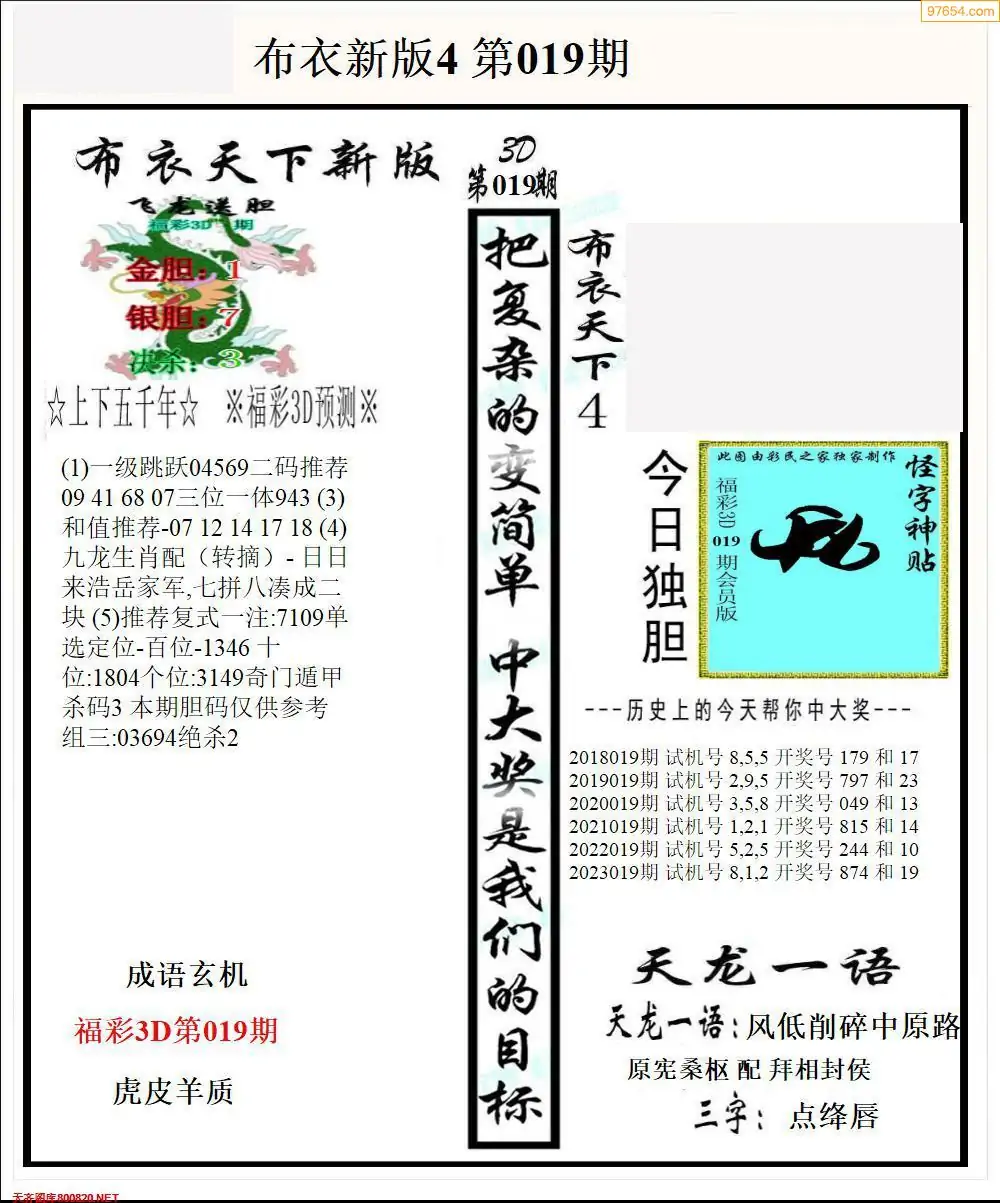 26019期早版布衣天下3D图迷