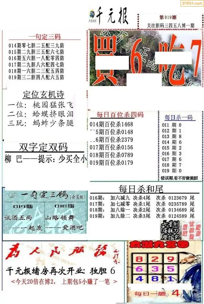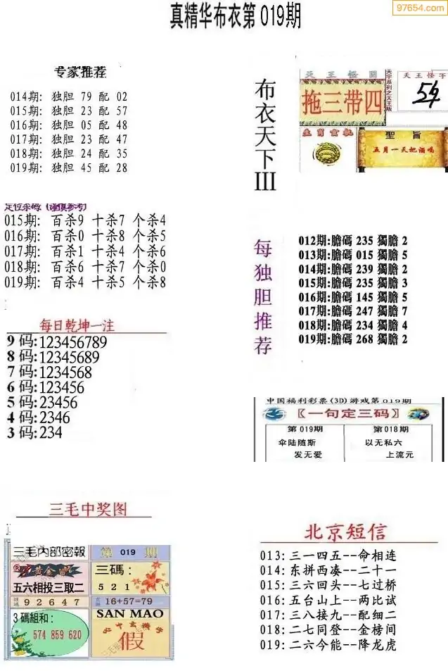 (8)26年019期今日3d各类彩报汇总