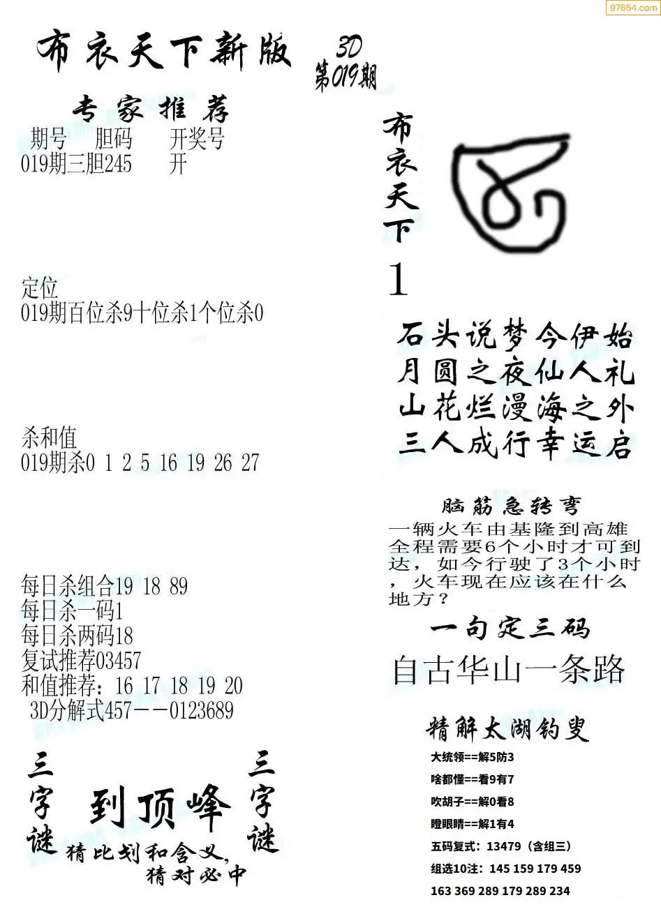 (2)26年019期本期3d图迷汇总_福彩3D图谜总汇图