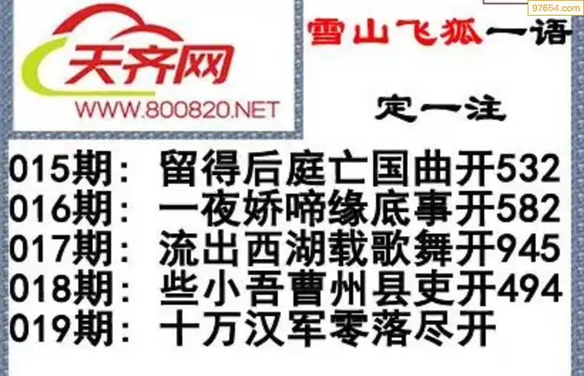 彩票3d字谜019期雪山飞狐一语定一注