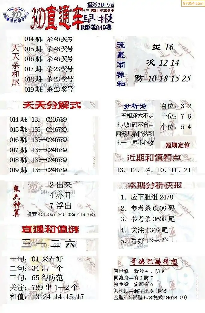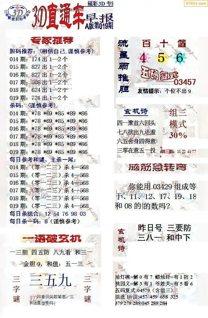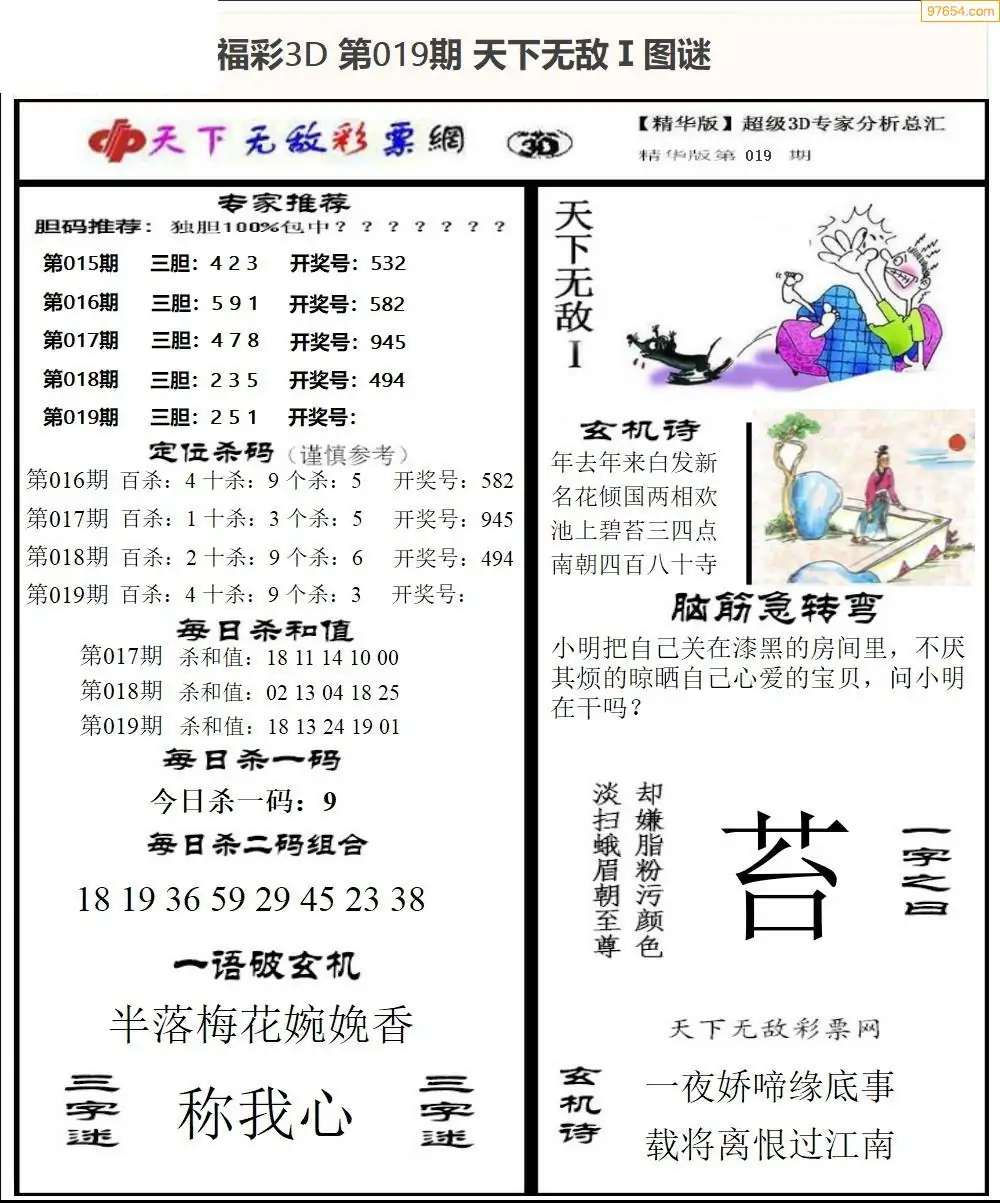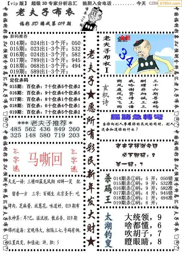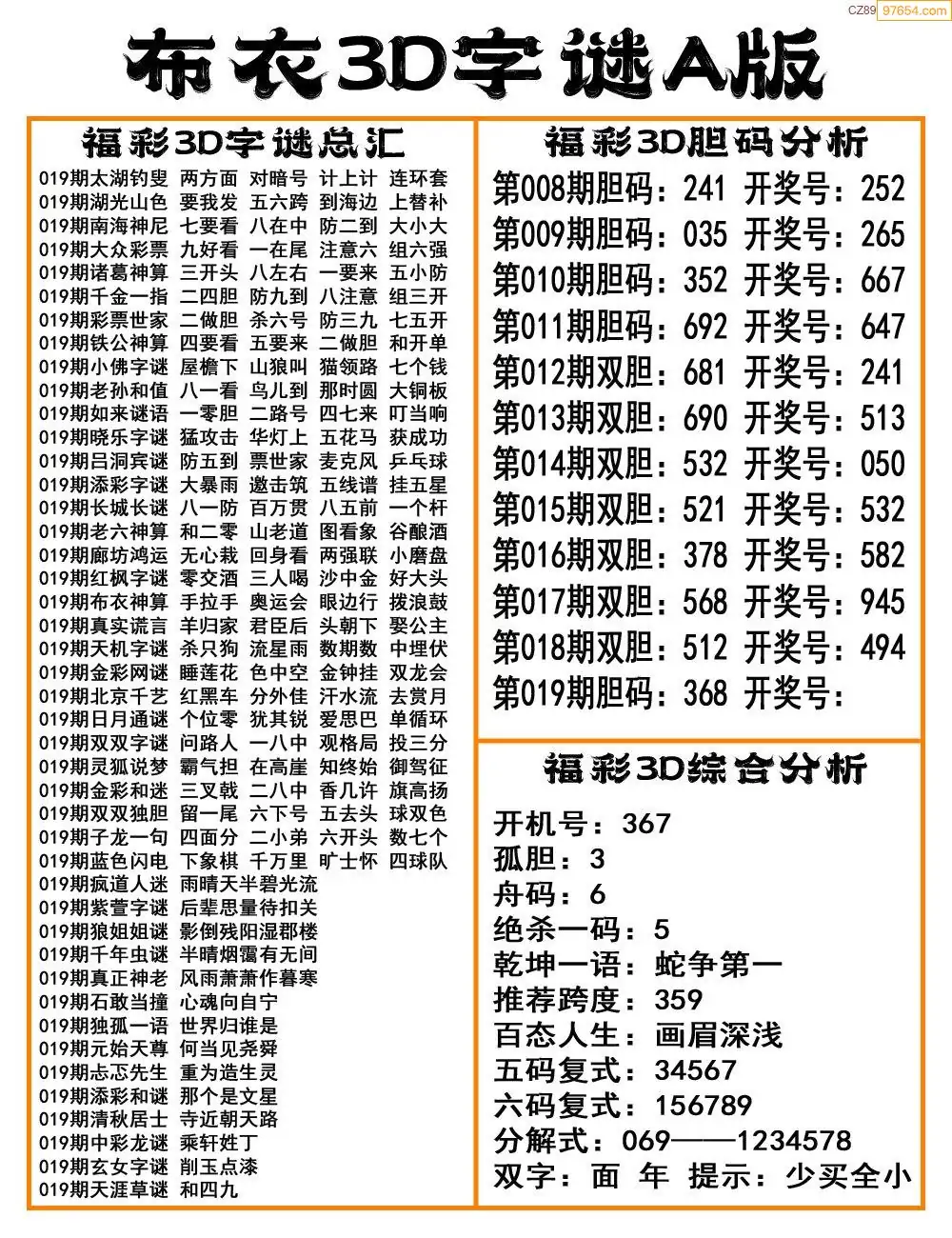 (3)2026019期3D预测总汇全图_福彩3d图谜字谜总汇