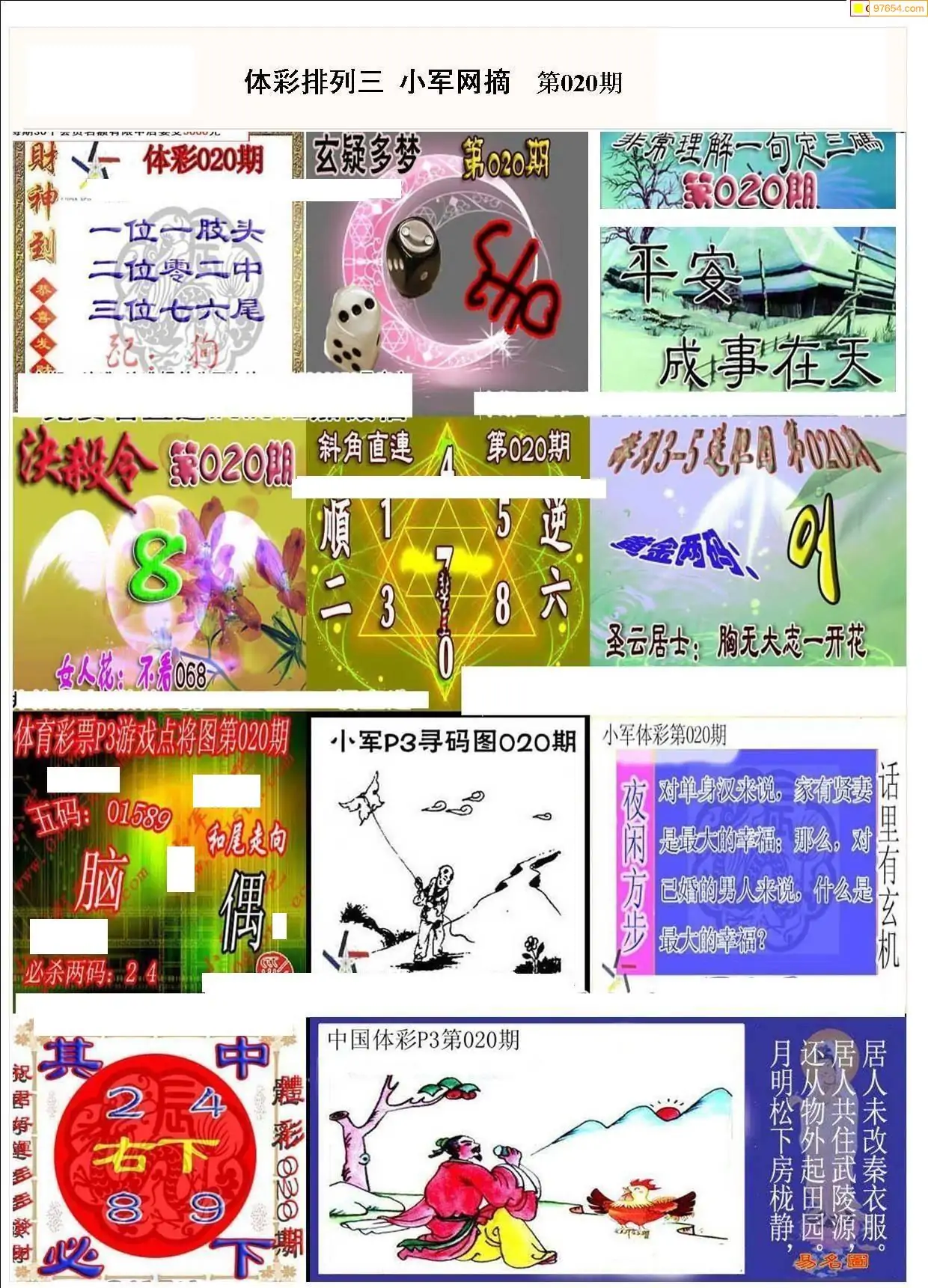 020期清清漫玄系列体彩p3图谜_排列三彩报图谜总汇分享