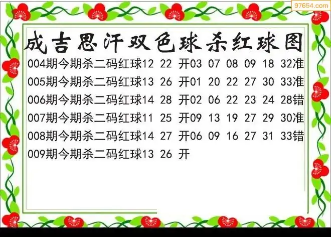 26年双色球009期成吉思汗杀二码红球图迷