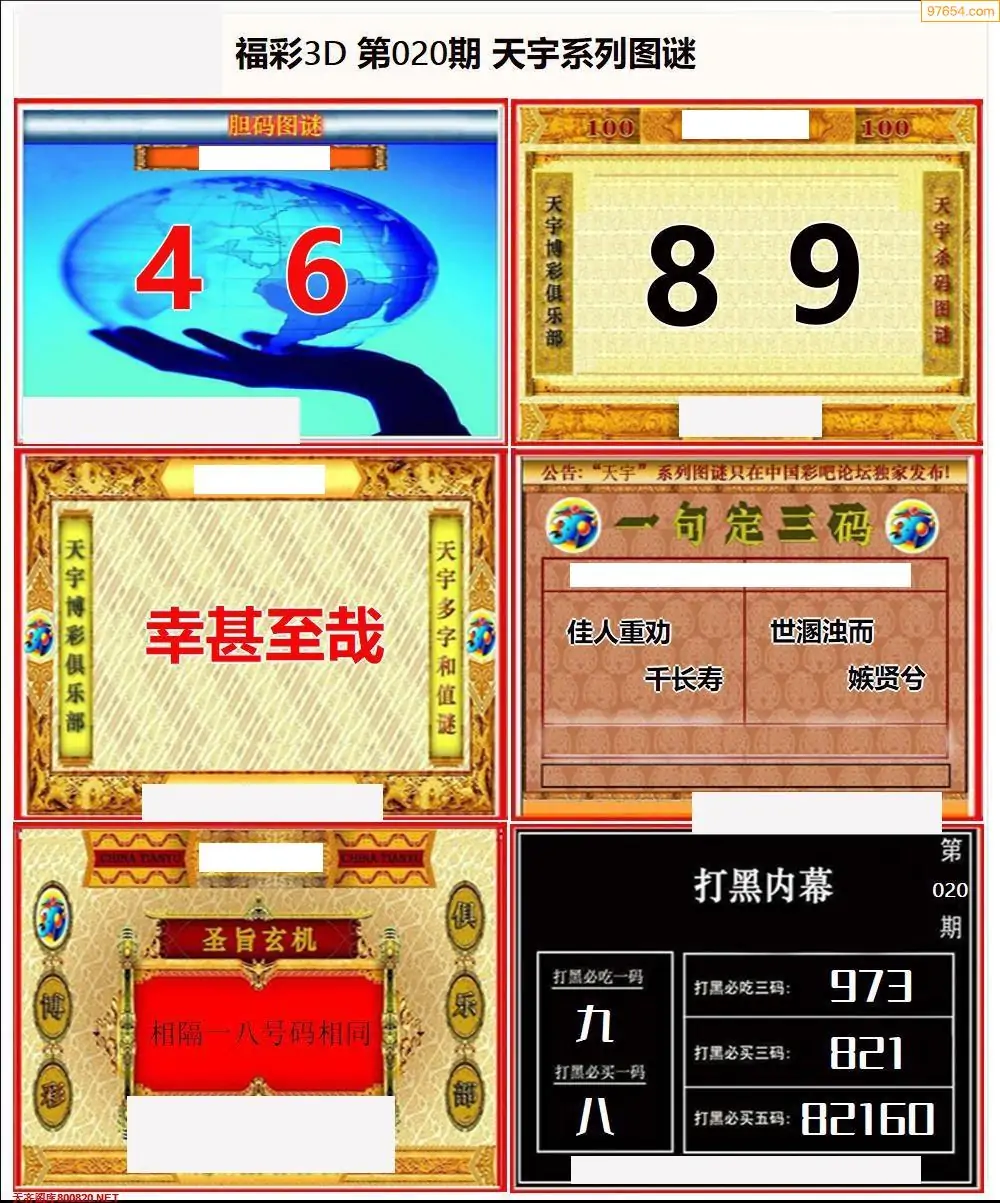 福彩3D020期天牛彩吧套图整合总汇