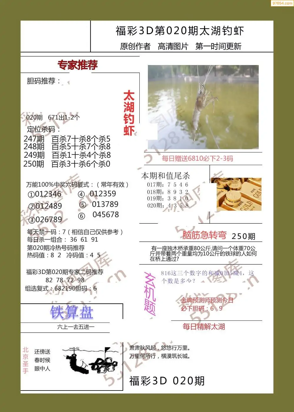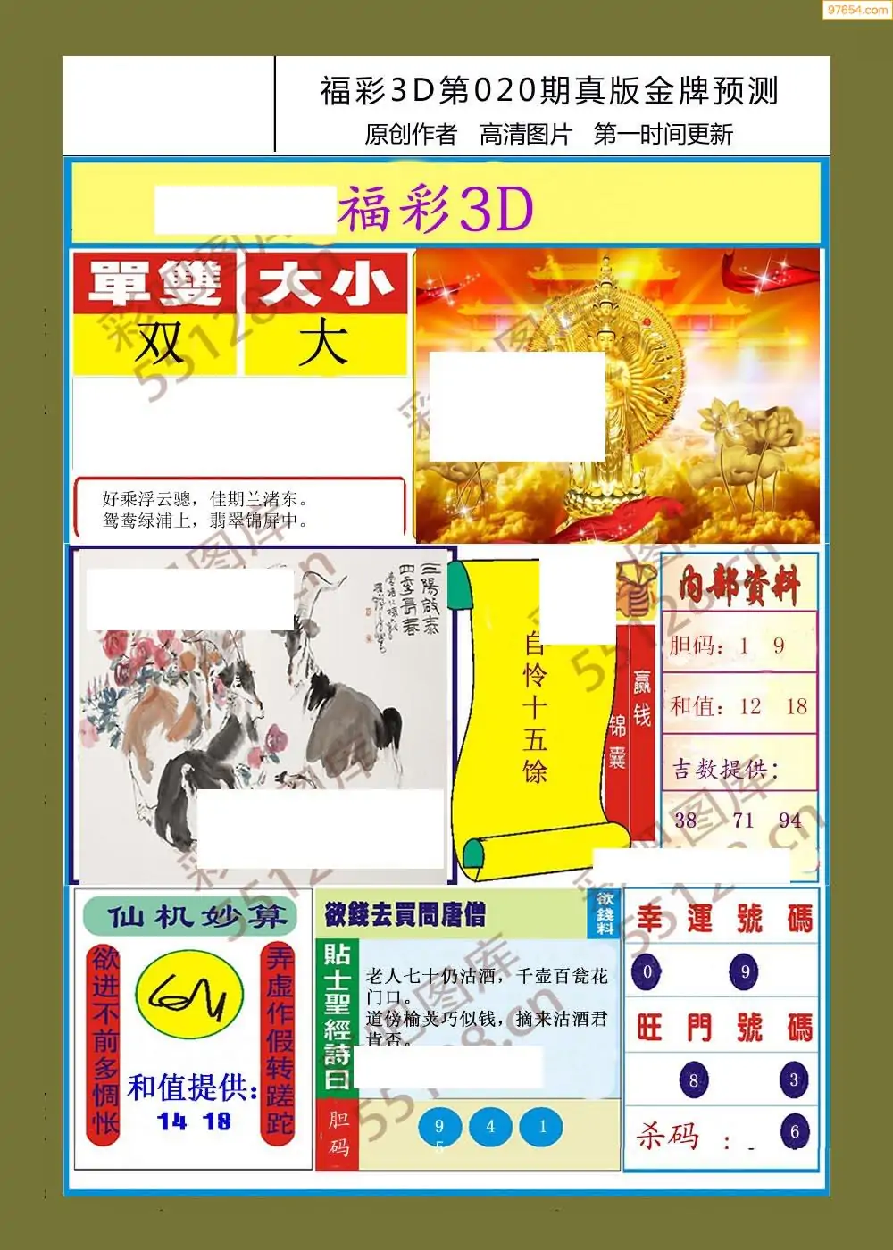 福彩3D020期天牛彩吧套图整合总汇