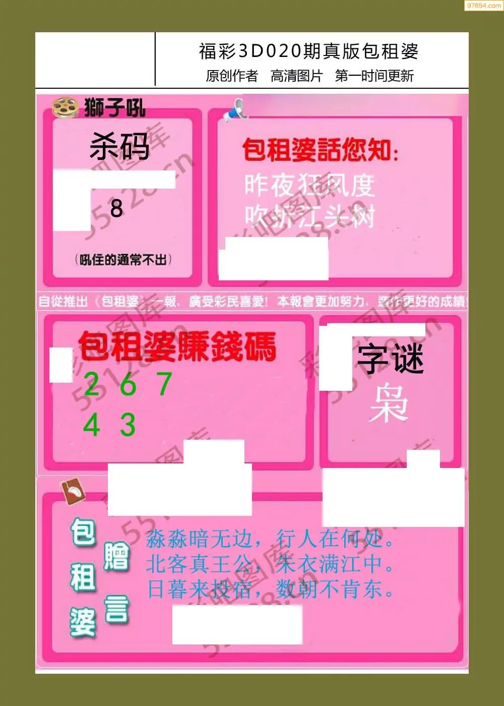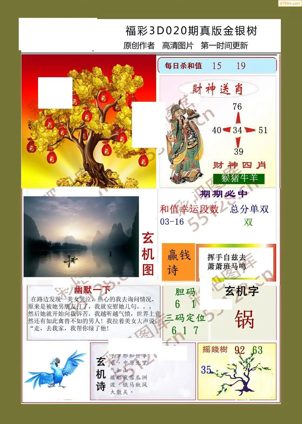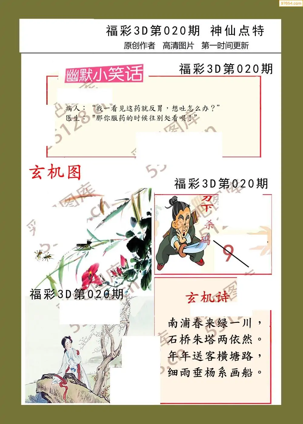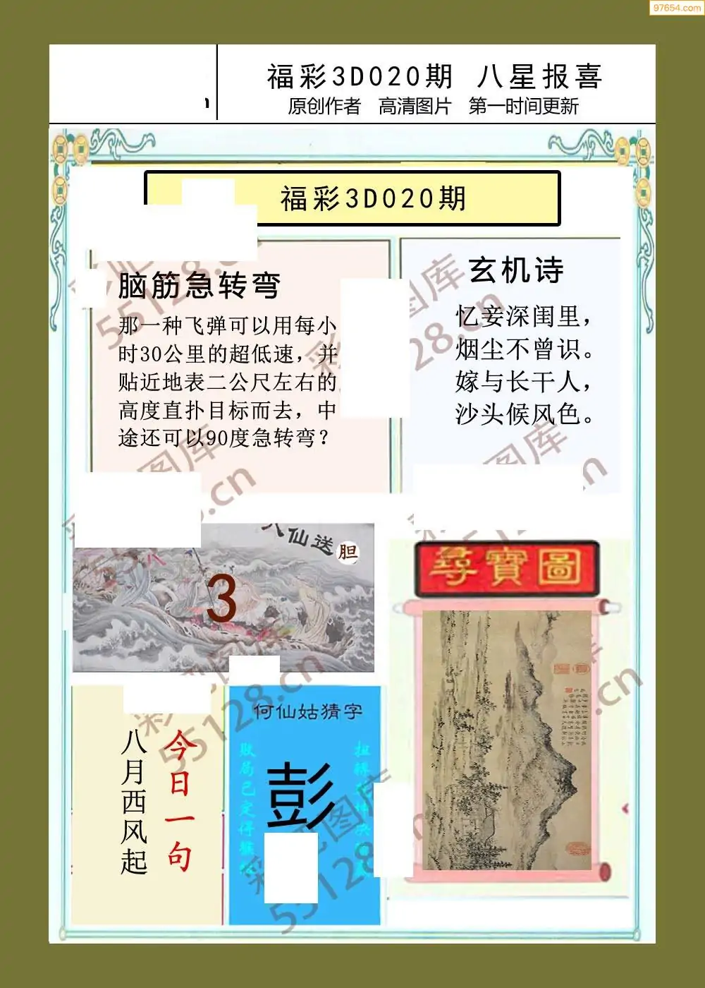 020期鑫马分析+杀手报3d图谜