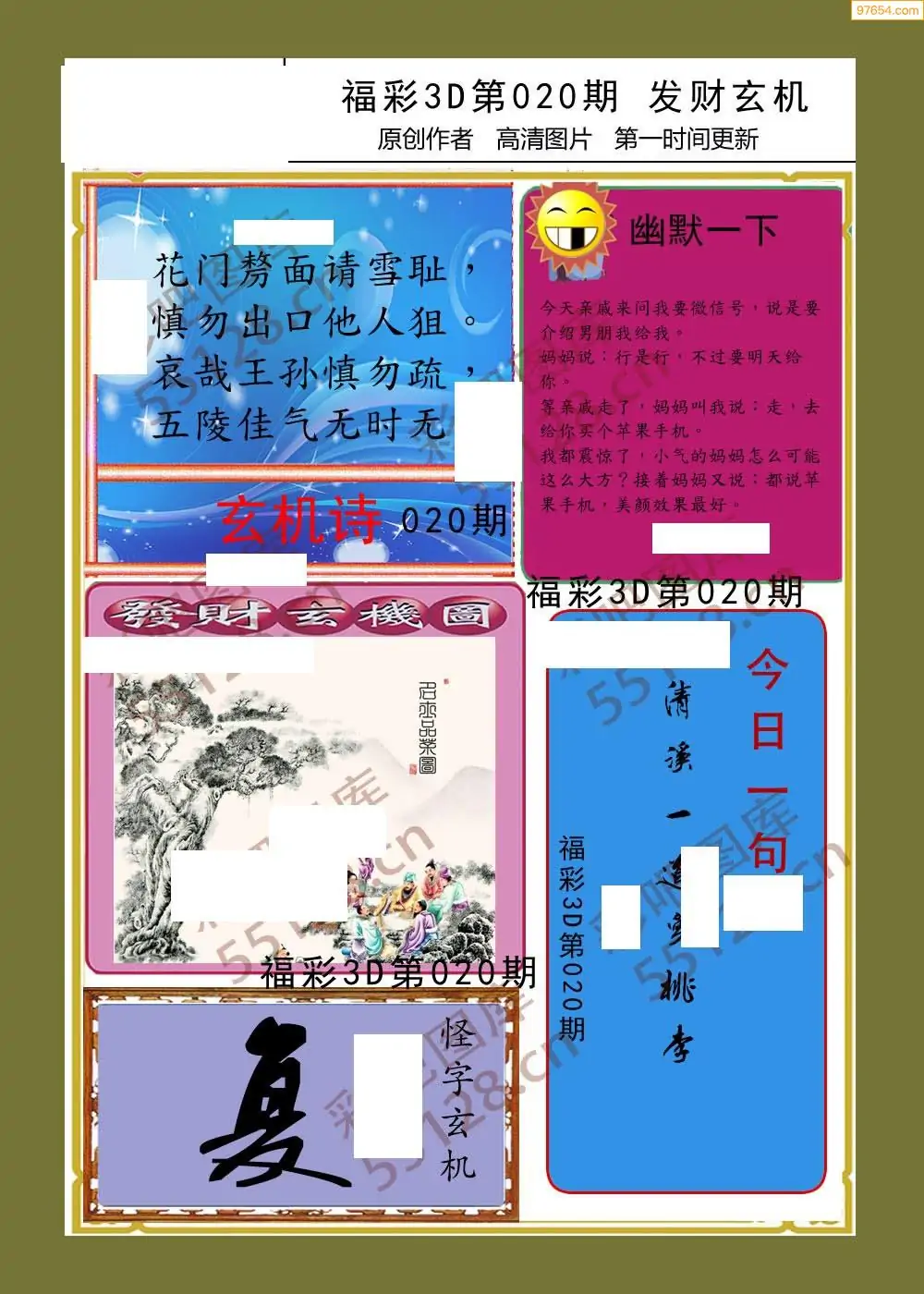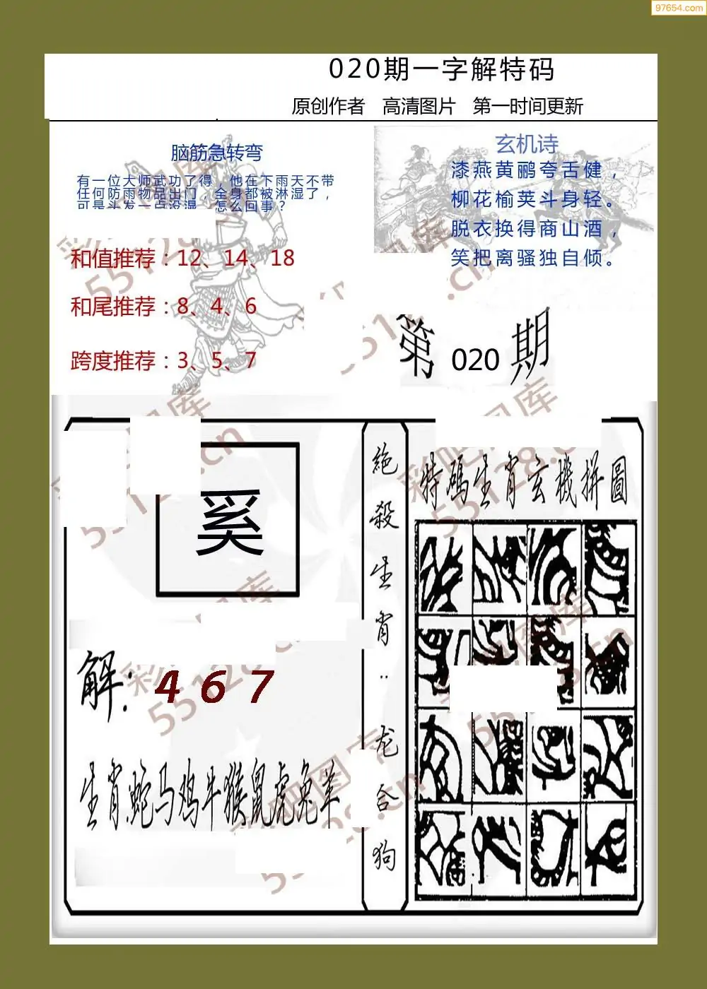 020期福彩天机壁怪字图