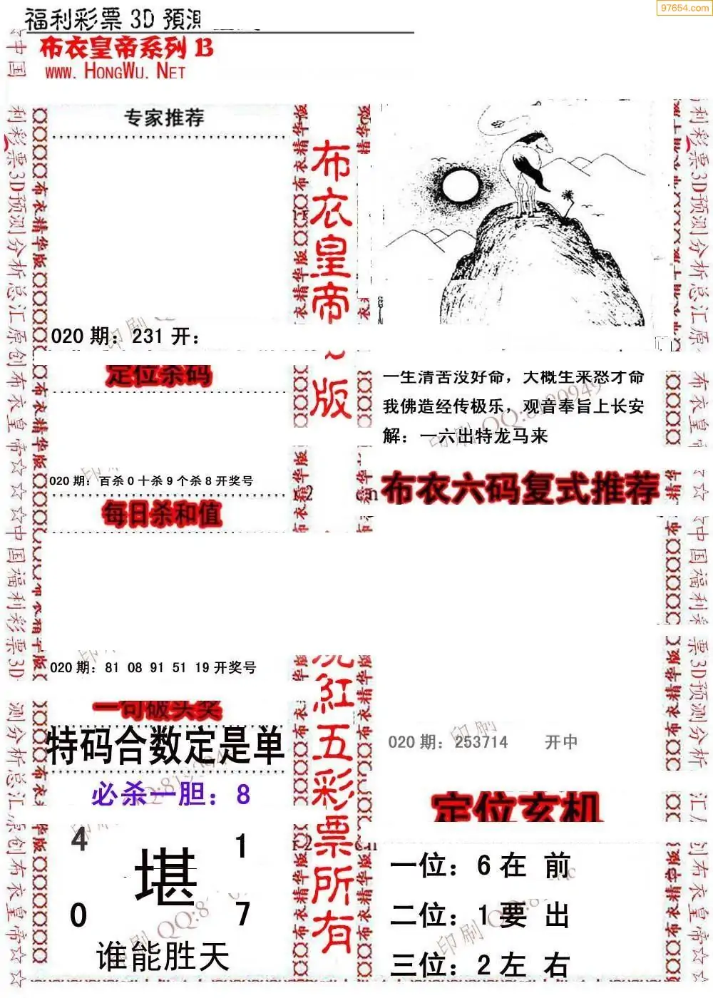 020期3D彩吧图库精华布衣图123456分享