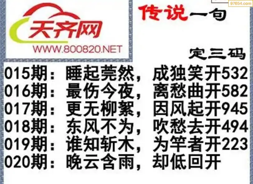 福彩3d26年020期字谜传说一句定三码