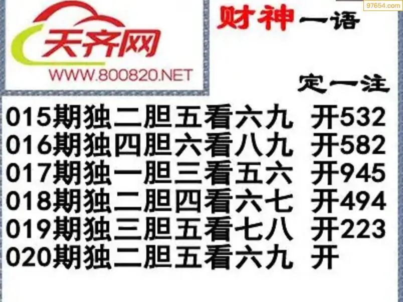 彩票3d字谜020期雪山飞狐一语定一注