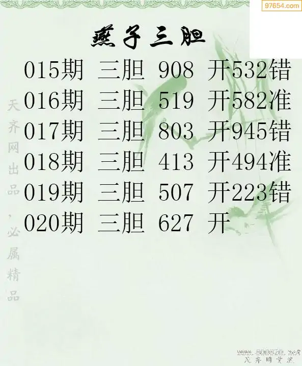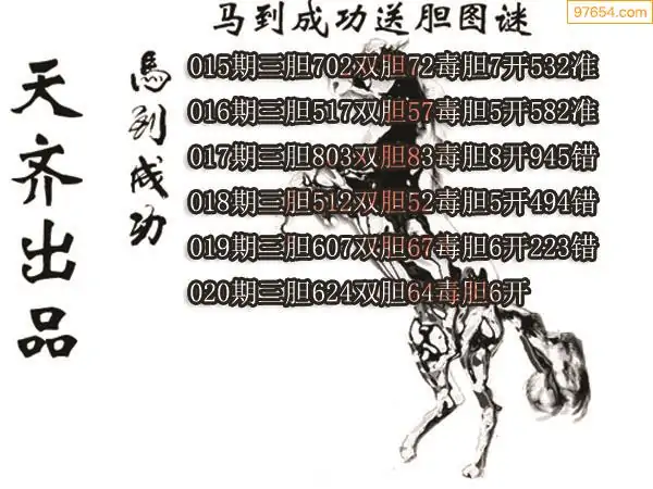 020期97654本站收集胆码出号预测