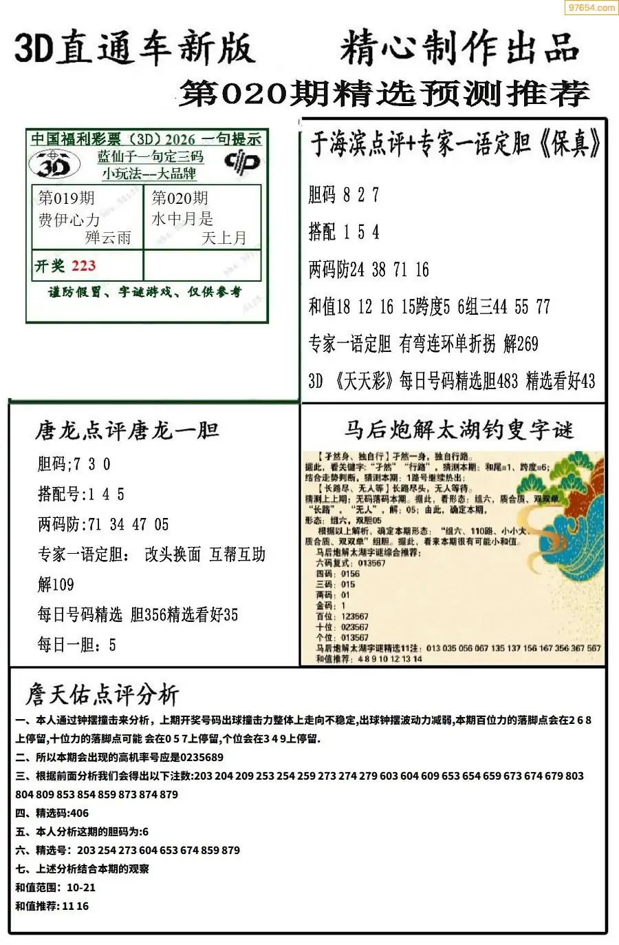 26年020期3D各板块资料整合汇总