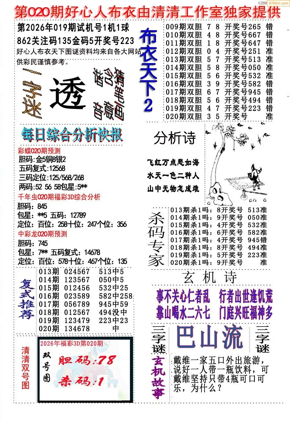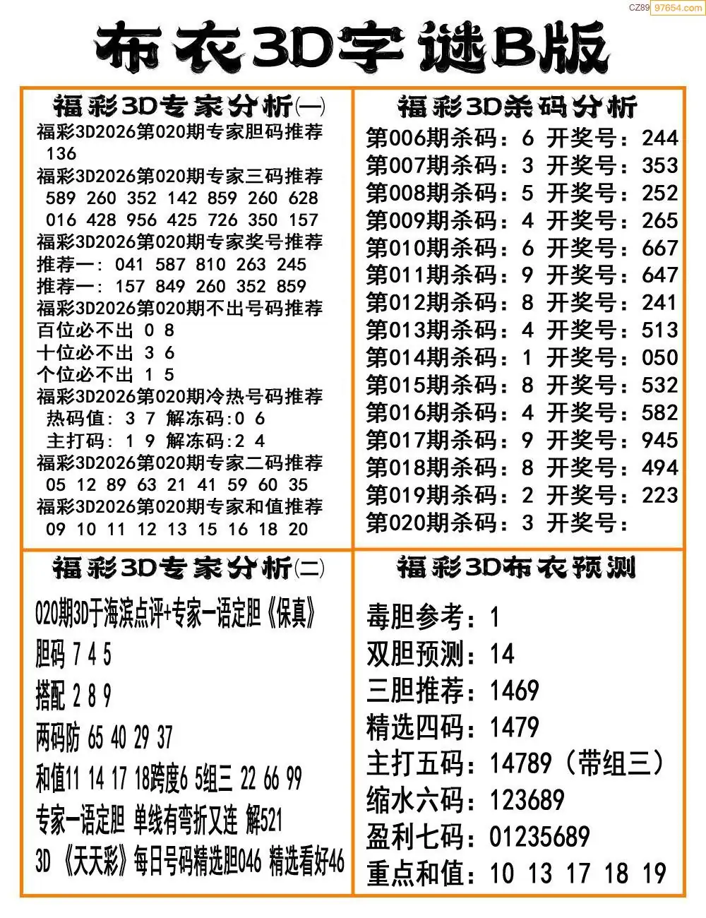 (2)26年020期本期3d图迷汇总_福彩3D图谜总汇图