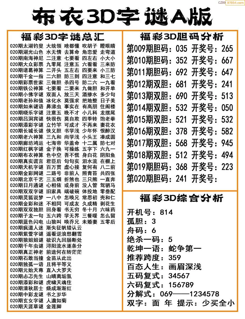 (3)2026020期3D预测总汇全图_福彩3d图谜字谜总汇