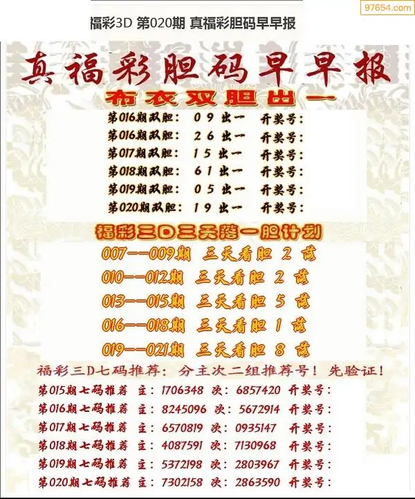 (8)26年019期今日3d各类彩报汇总