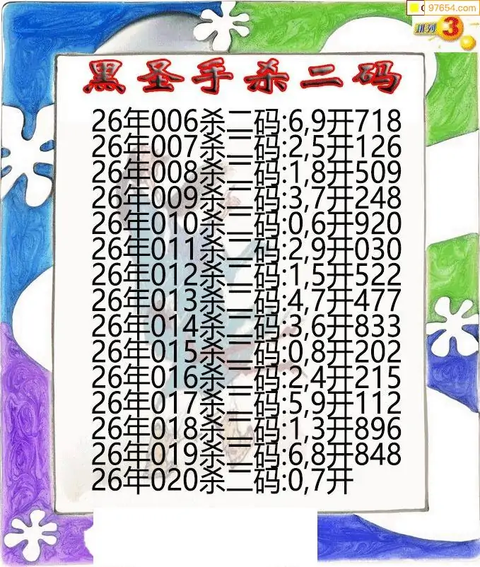 26年020期黑圣手排3杀二码图迷