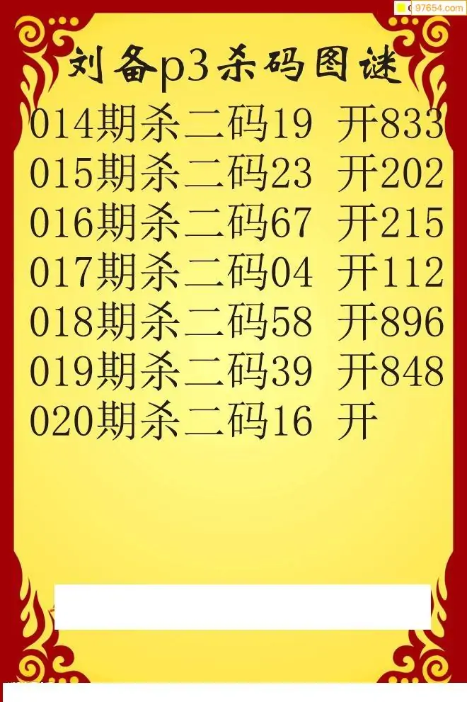 26年020期刘备p3杀码图谜