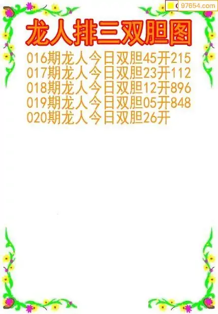 26020期龙人排列3双胆图
