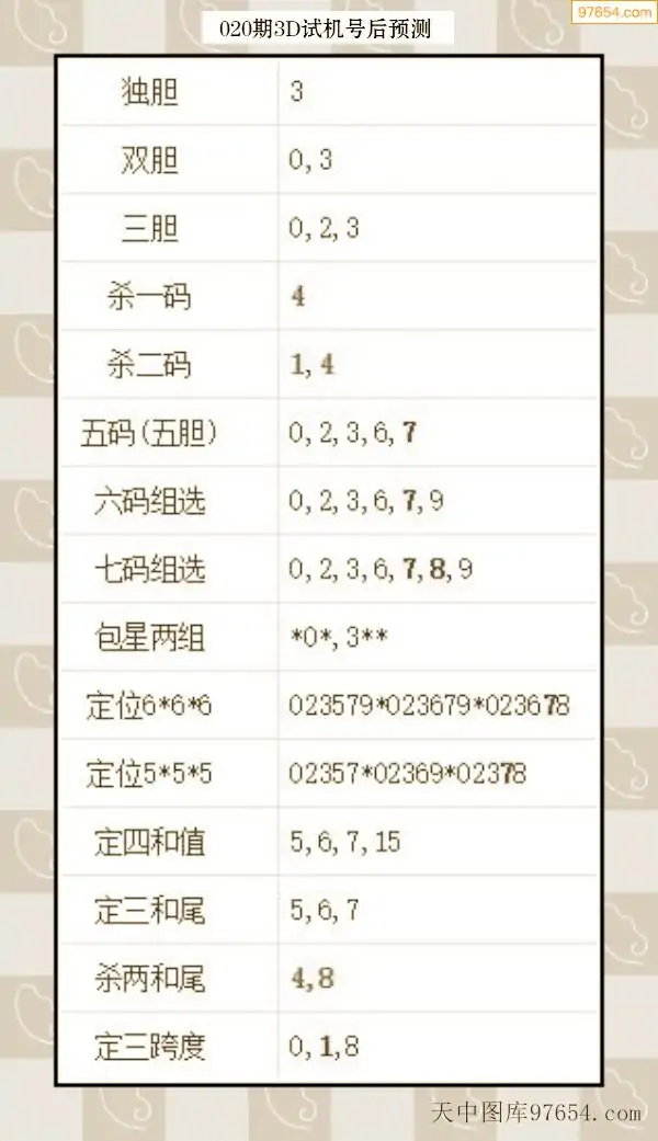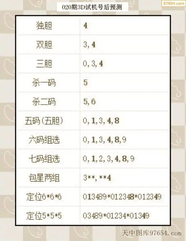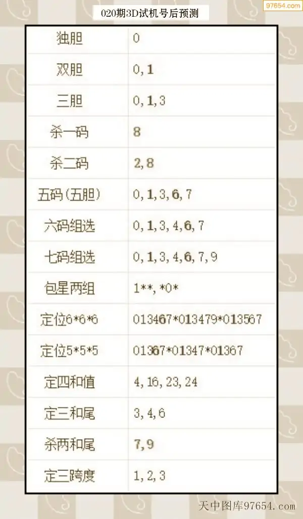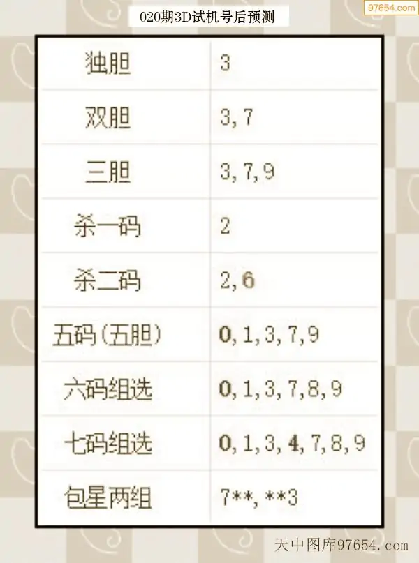 3D020期陈哲友福彩试机号后一语定胆(原创)
