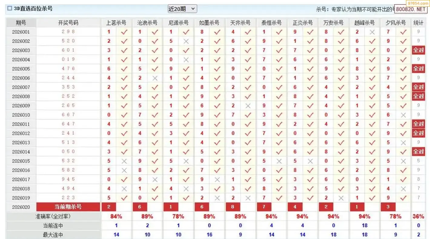 福彩3D26年020期杨树林分析杀码 16连中