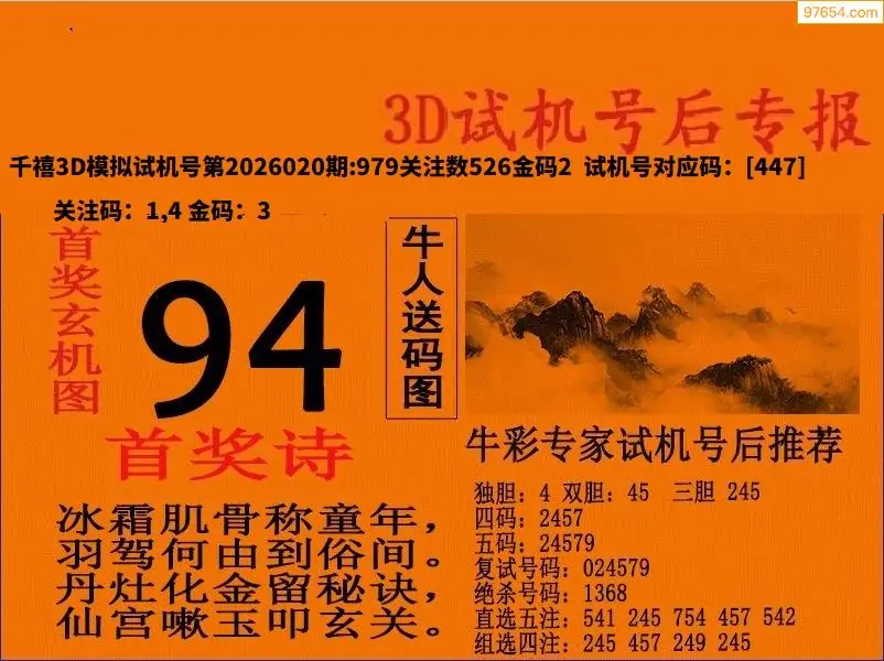 26020期福彩3D试机号后首奖诗