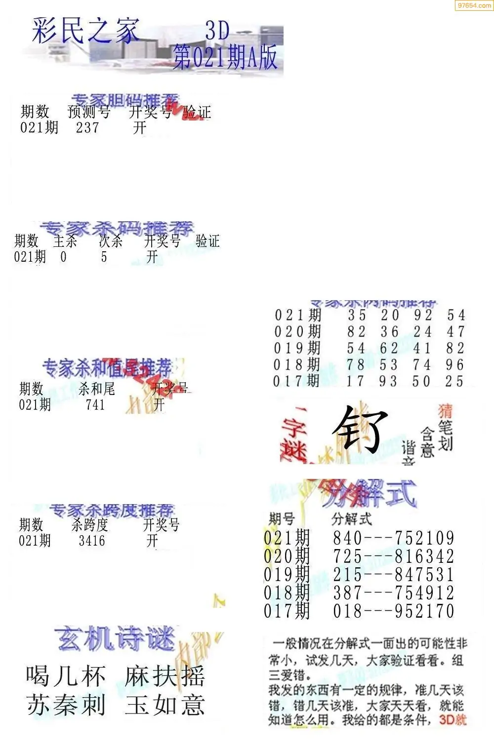 26021期3D彩民各类资料A版
