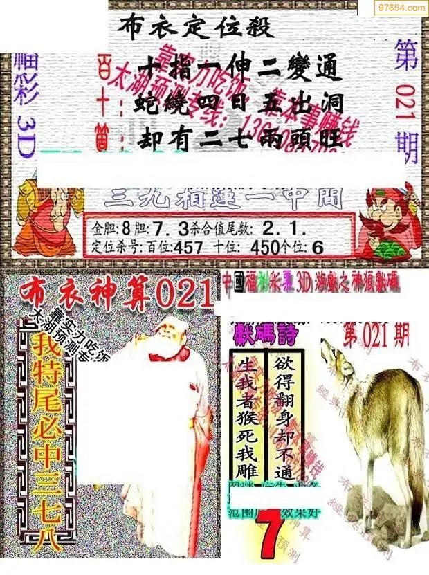 021期3D彩吧图库精华布衣图123456分享
