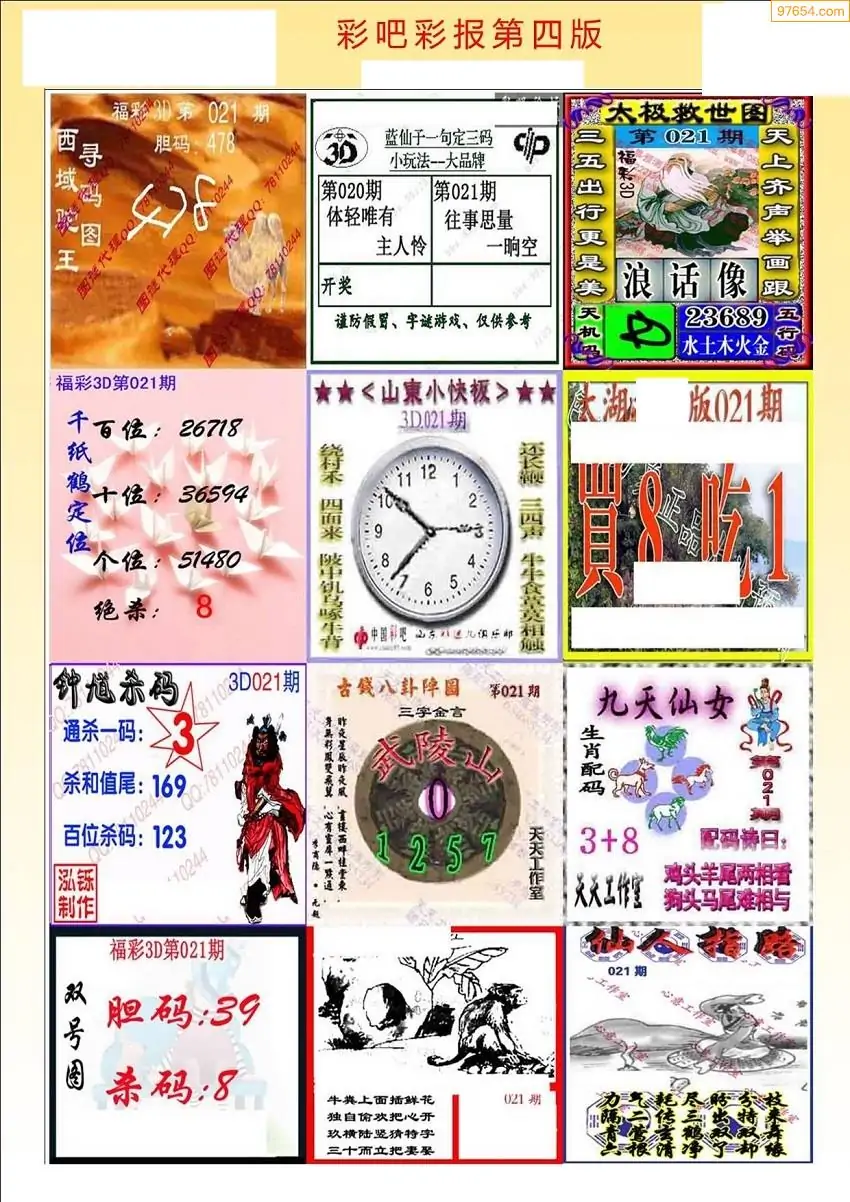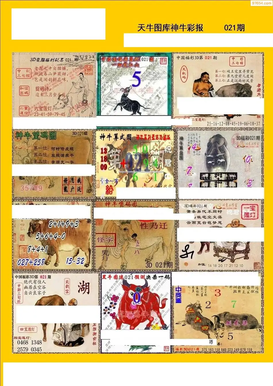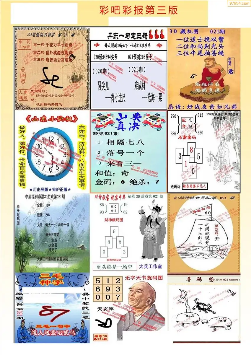 福彩3D021期天牛彩吧套图整合总汇