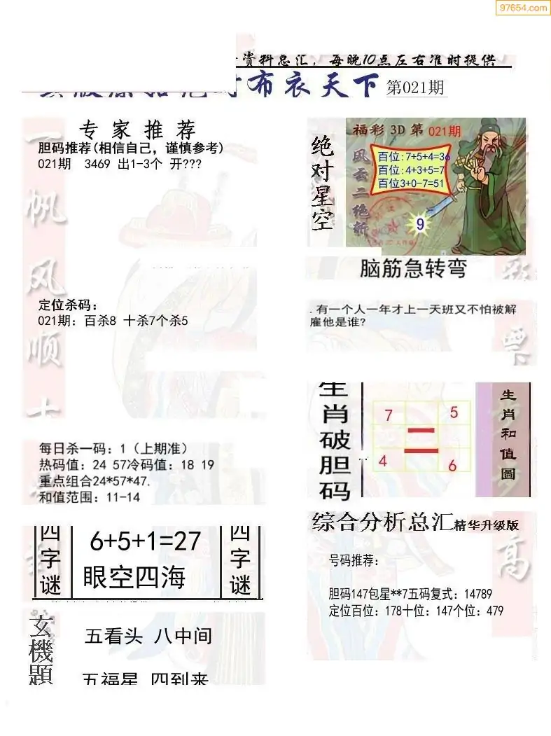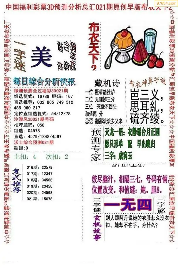 (3)2026020期3D预测总汇全图_福彩3d图谜字谜总汇