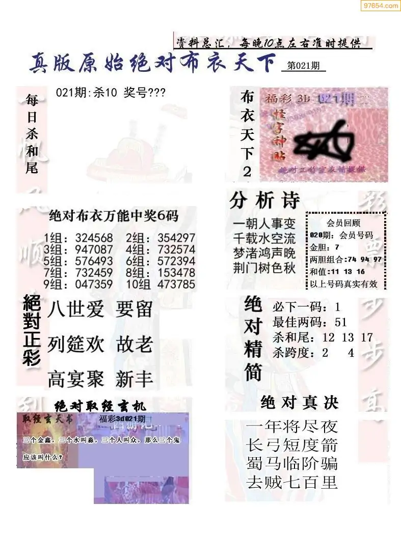 (2)26年021期本期3d图迷汇总_福彩3D图谜总汇图