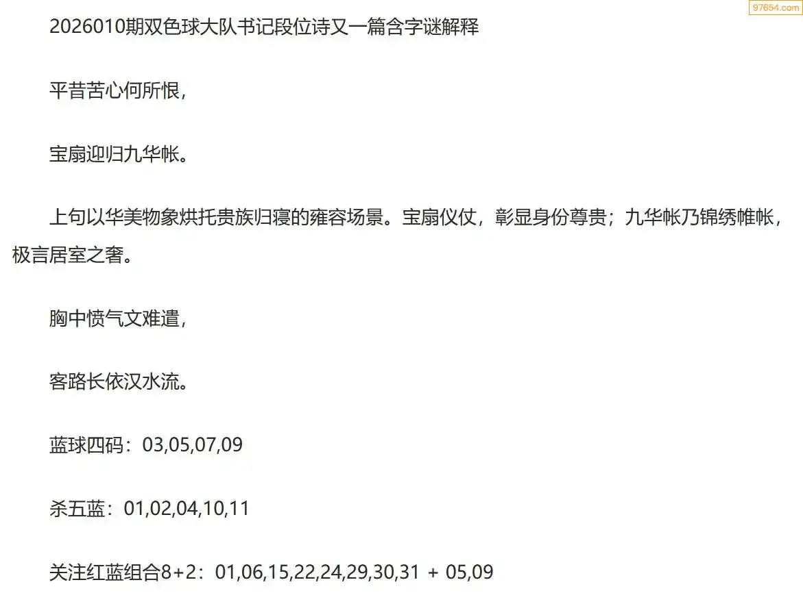 017期牛彩双色球字迷诗迷汇总(天中整理)