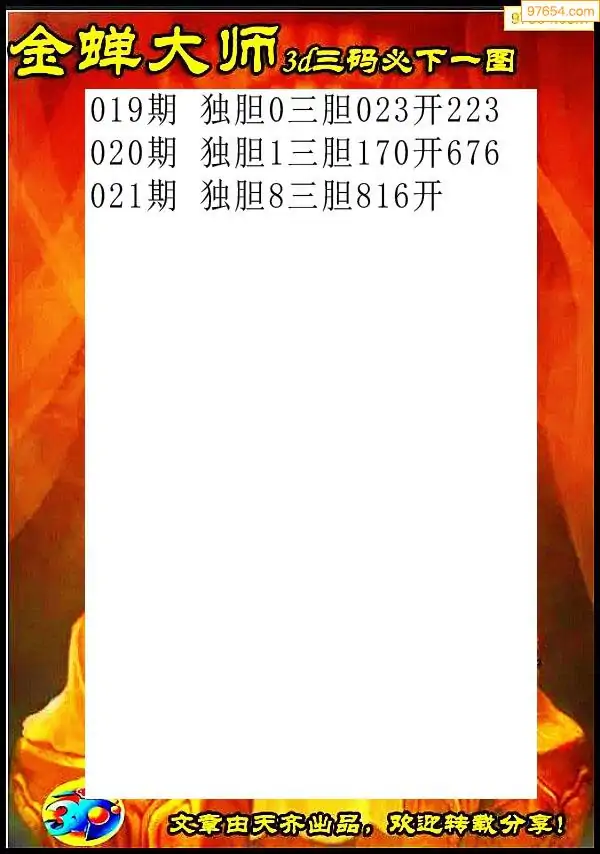 天齐网3d26年021期胆码图 胆:57